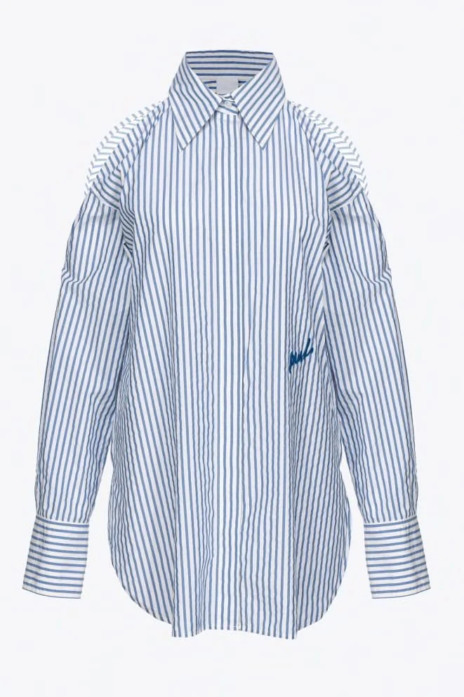 Haftowane logo PINKO na przodzie koszuli to wyraz wyjątkowej jakości i elegancji, będący symbolem marki o wyrafinowanym i indywidualnym stylu.
