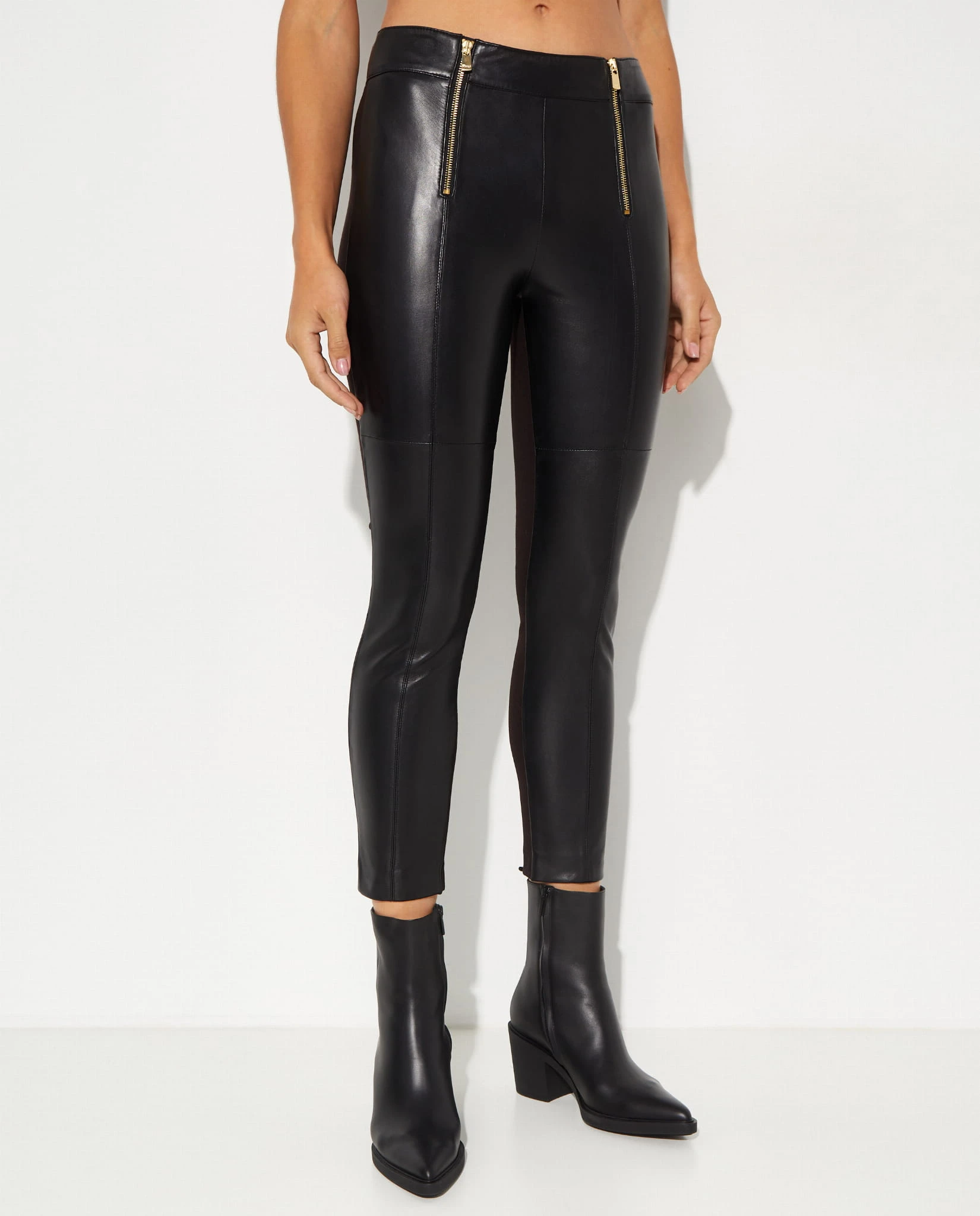 - Obcisłe legginsy z przodu ze skóry, a z tyłu z elastycznej wiskozowej tkaniny technicznej w tym samym odcieniu