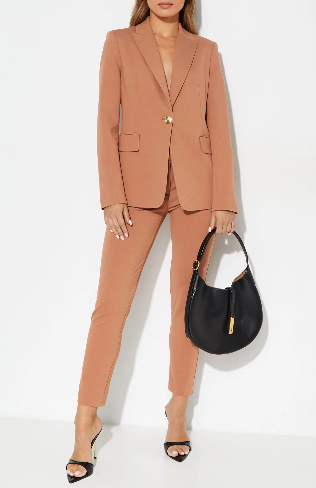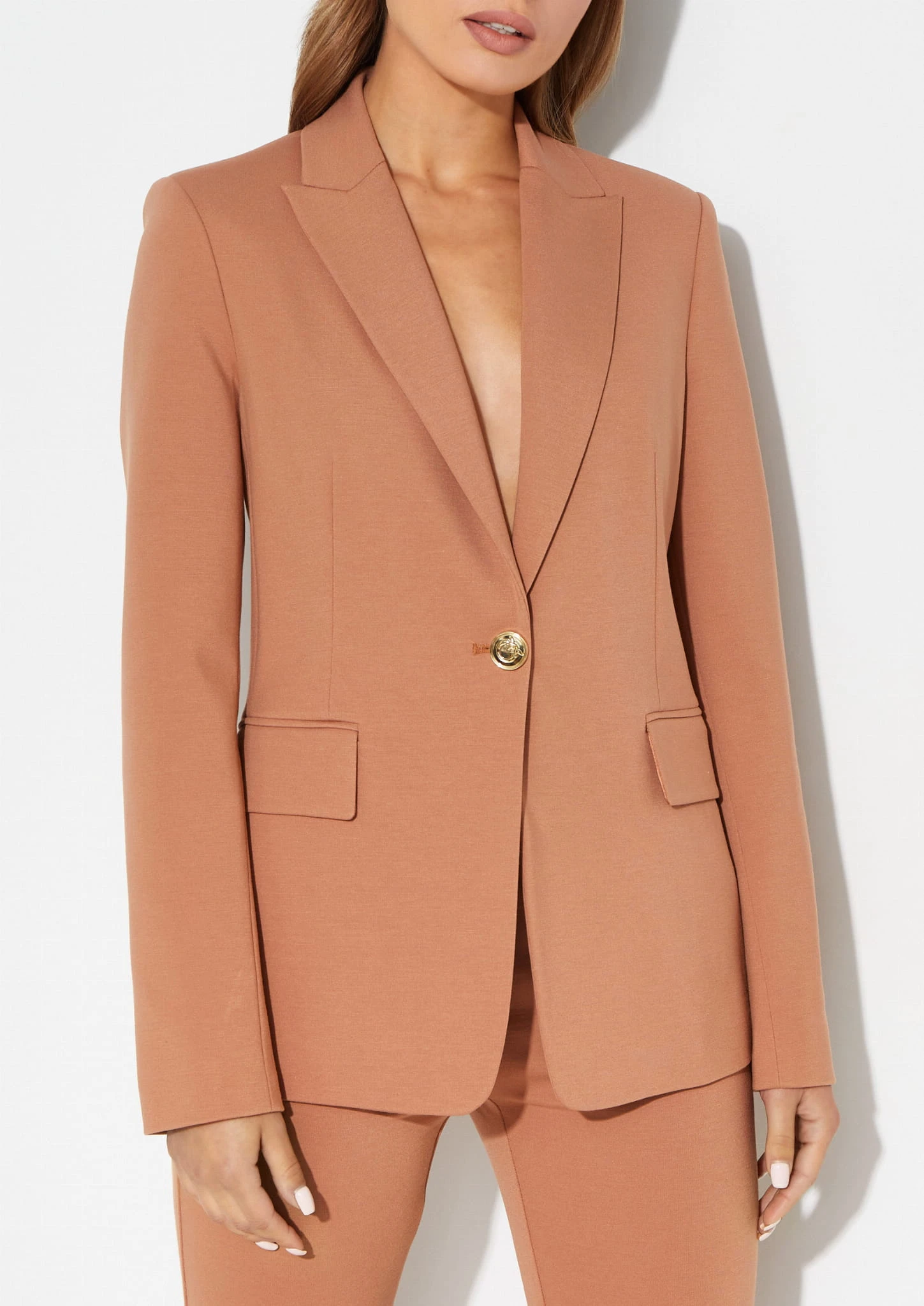 Brązowa marynarka Signum projektu Pinko wykonana jest z elastycznej wiskozy, co zapewnia jej miękkość, komfort noszenia i lekkość. Ma jednorzędowe zapięcie, które nadaje jej prosty, ale elegancki charakter. Kołnierzyk z klapami dodaje klasycznego wyrazu, a długie rękawy dopełniają całość. Marynarka posiada podszewkę, co zwiększa komfort i sprawia, że jest wygodna w noszeniu. To stylowy wybór, który łączy prostotę z elegancją i sprawdzi się zarówno w codziennych, jak i bardziej formalnych stylizacjach.