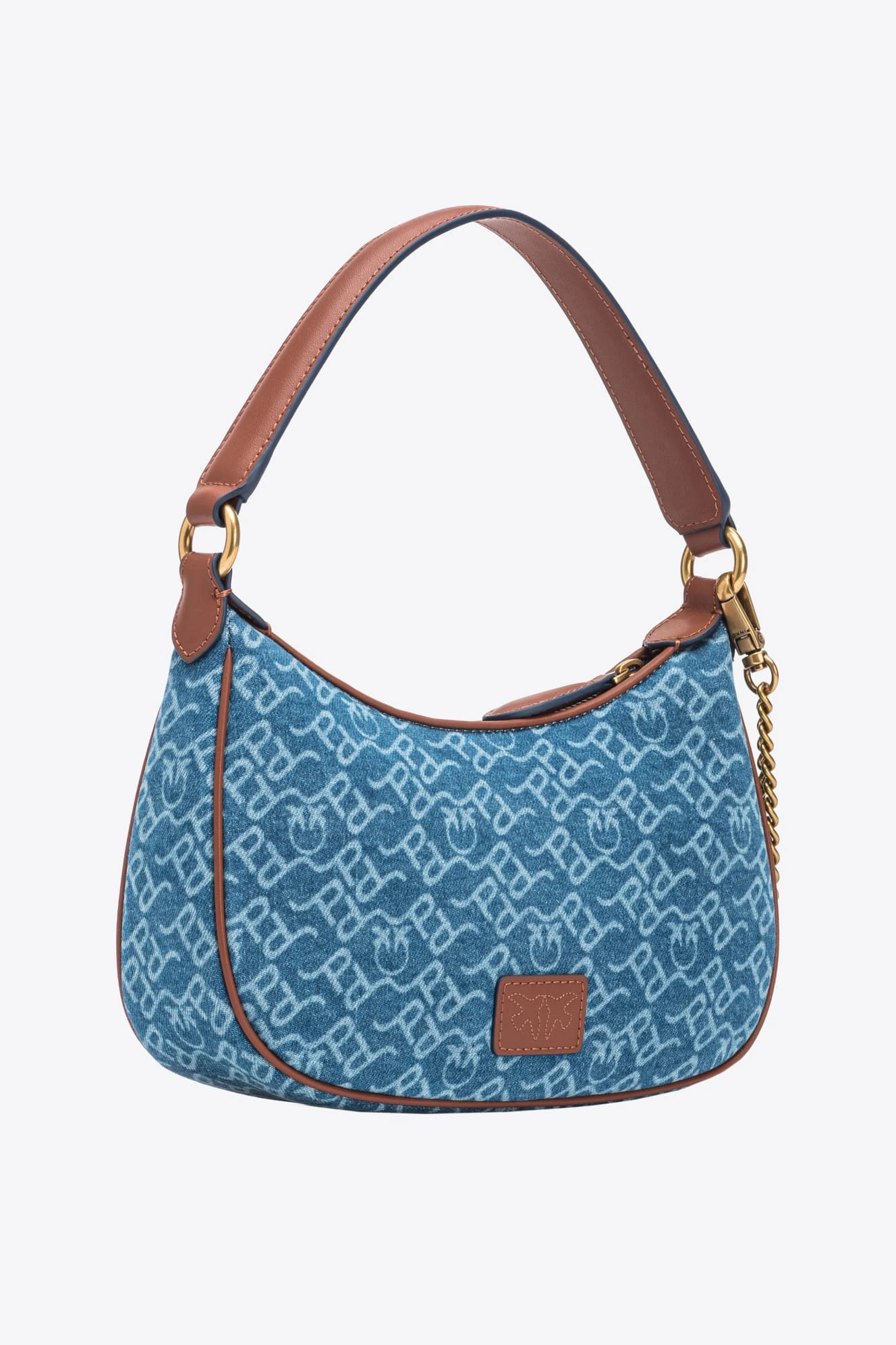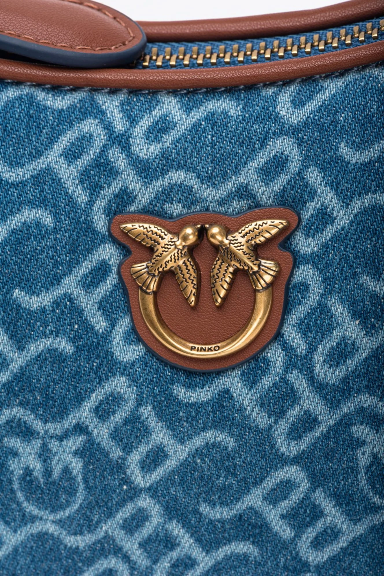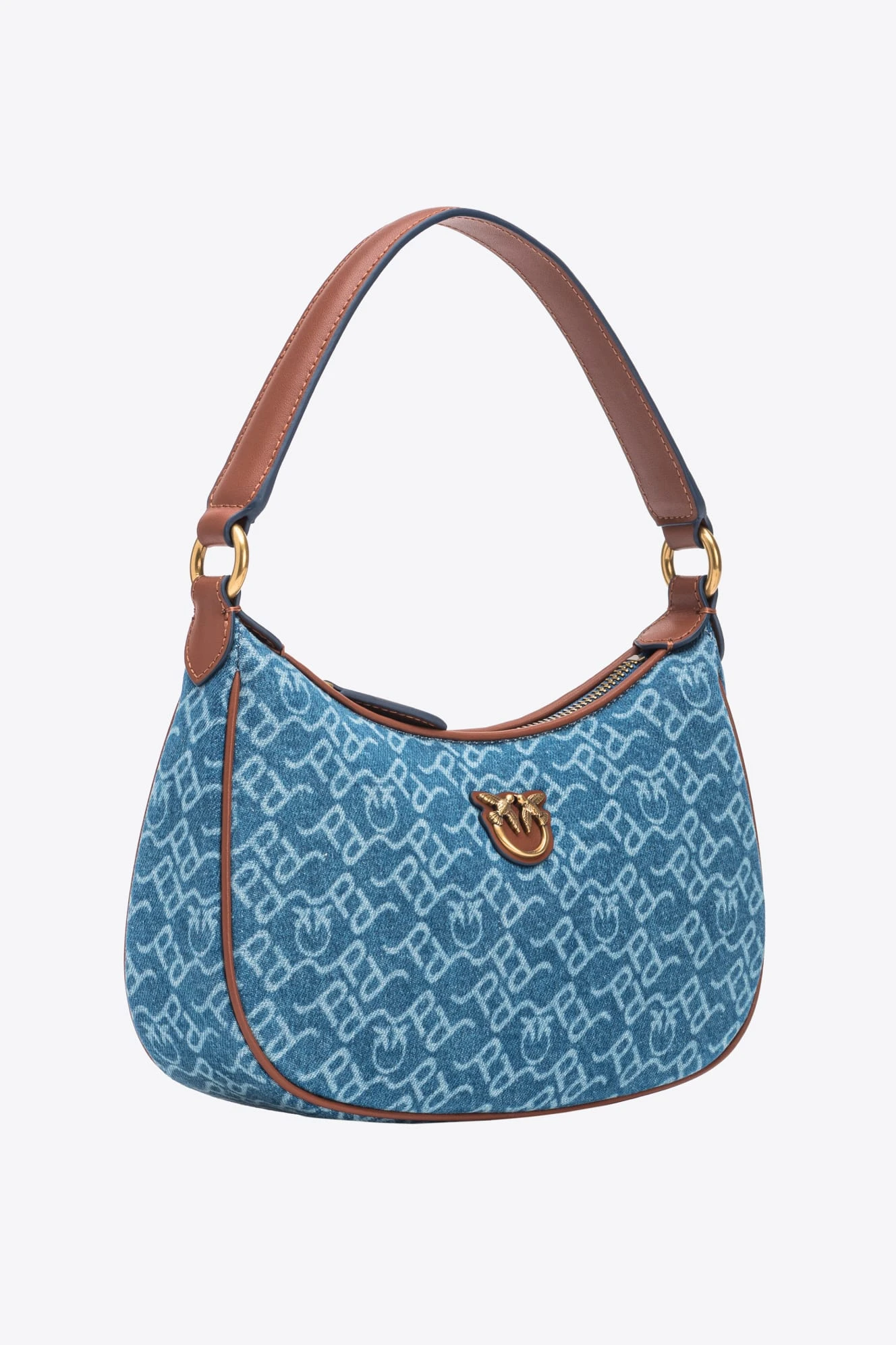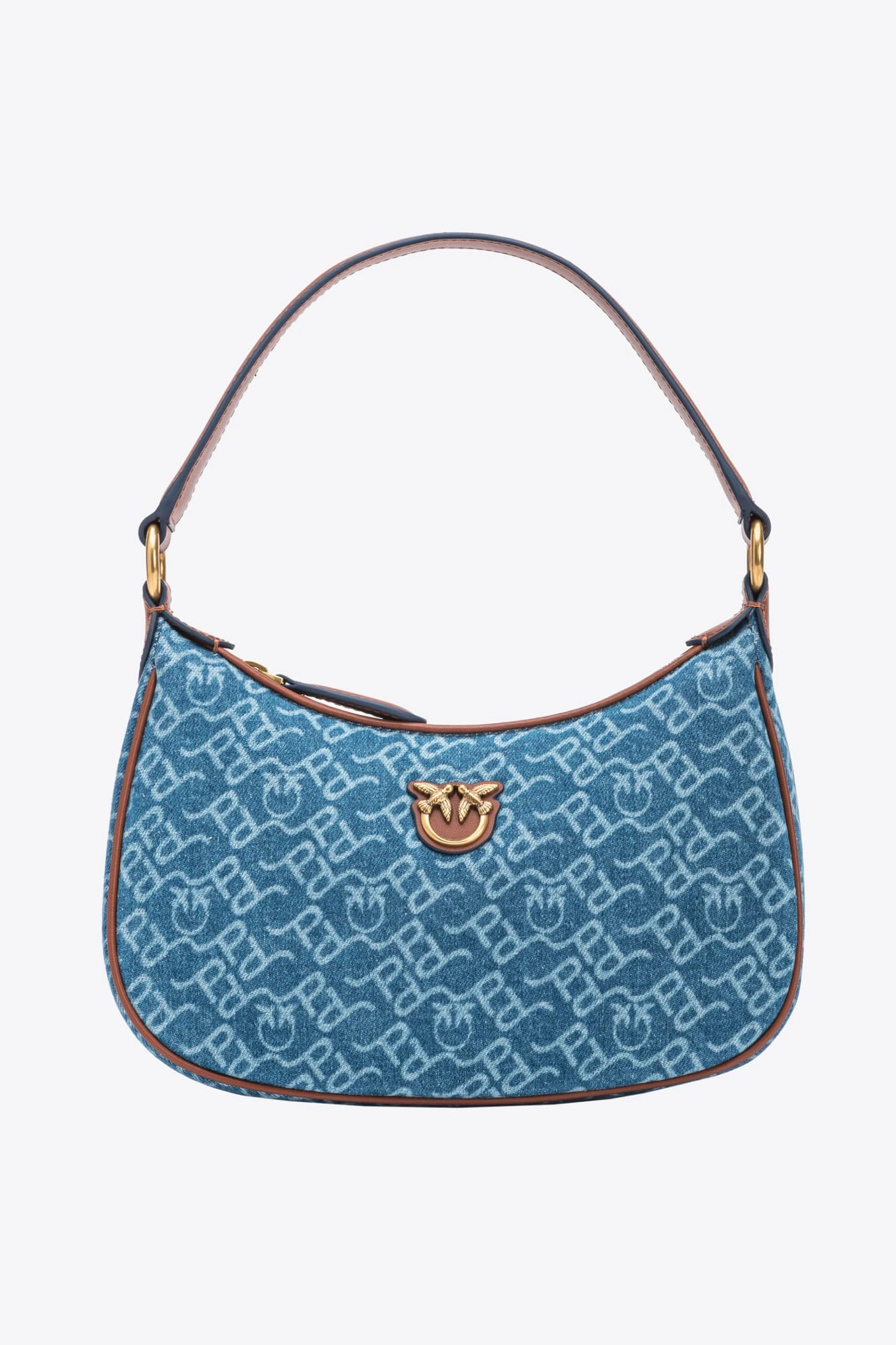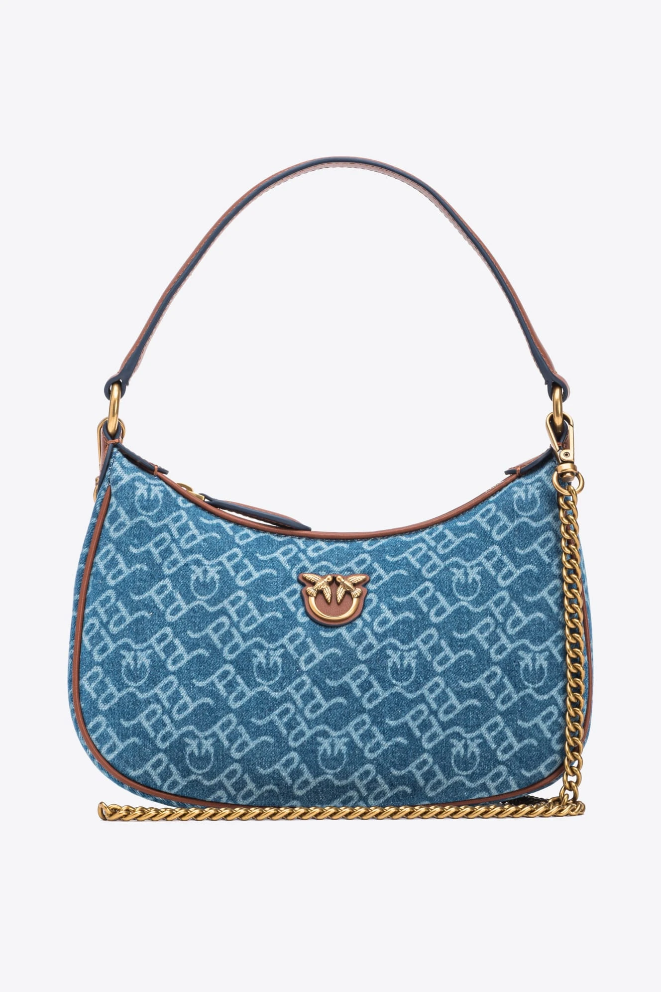 PINKO Niebieska, jeansowa torebka w kształcie półksiężyca Half Moon Mini