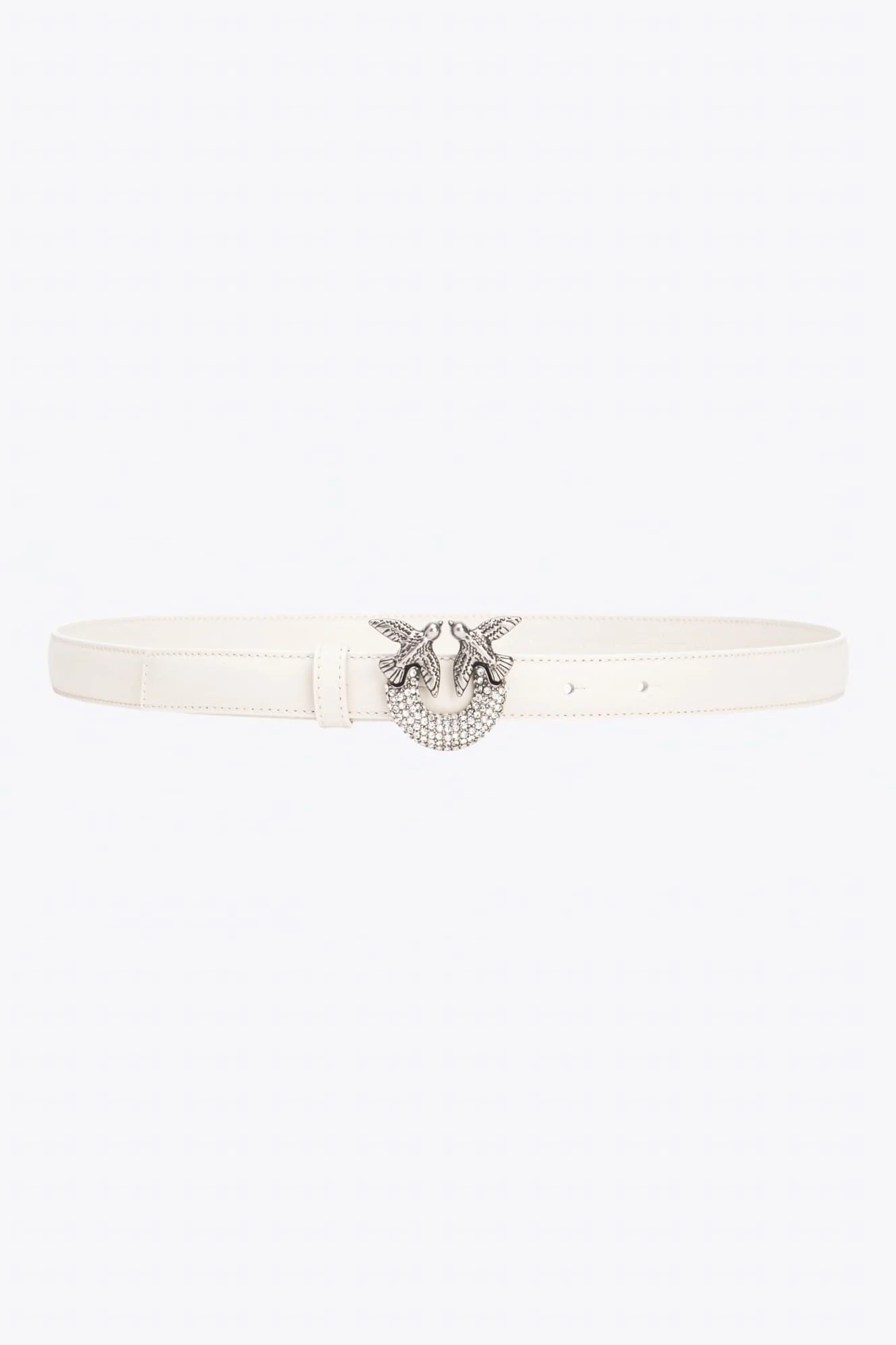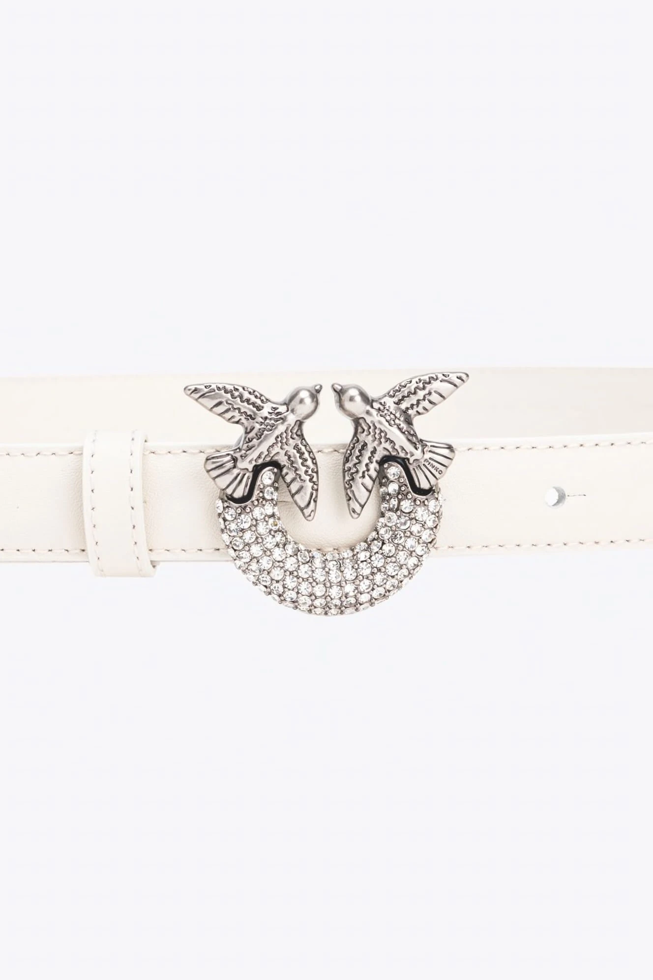 - Cienki pasek z miękkiej, jedwabistej w dotyku skóry, z metalową klamrą Love Birds Diamond Cut, galwanizowaną niklem i wzbogaconą dekoracyjnym wzorem z kryształków w tej samej tonacji