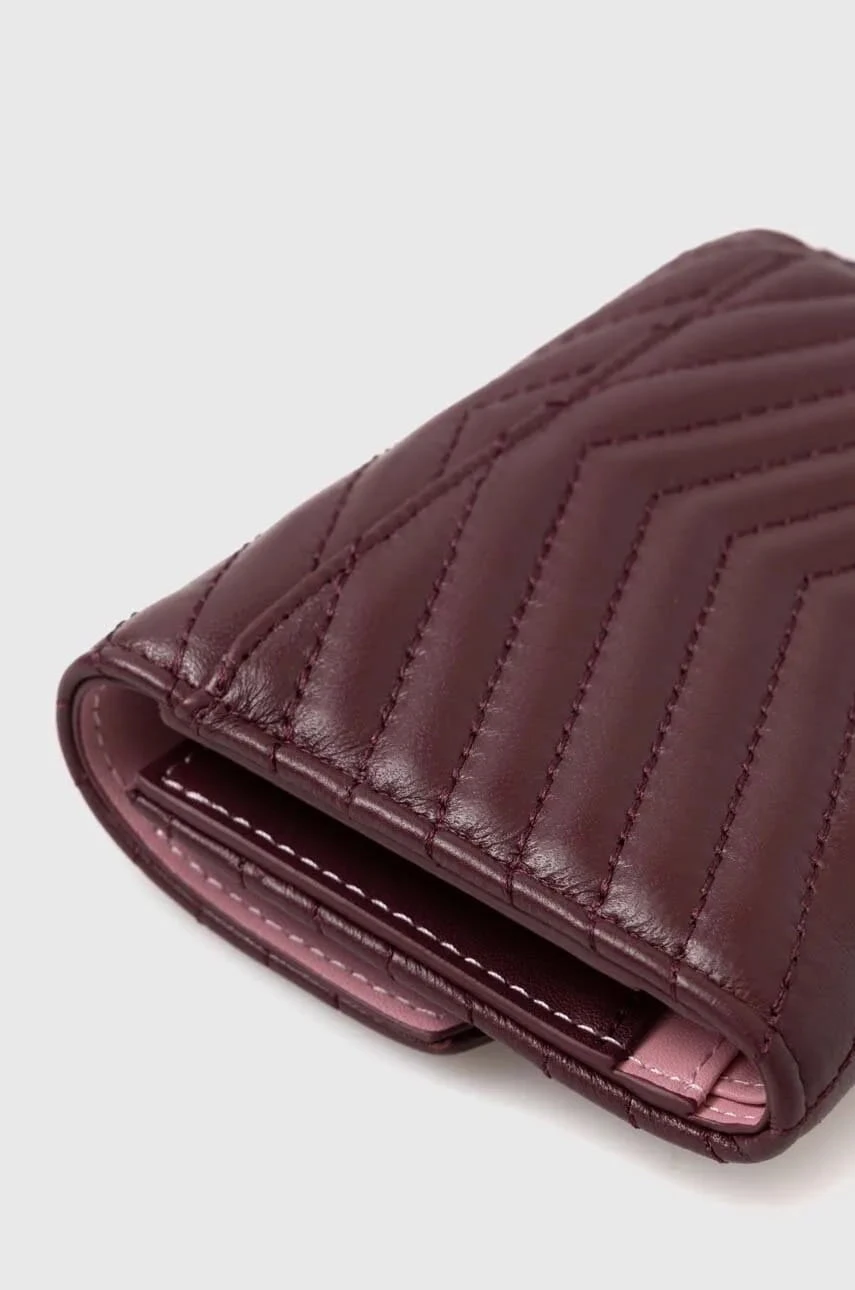 - Mały, kwadratowy portfel wykonany z pikowanej we wzór szewronu skóry nappa