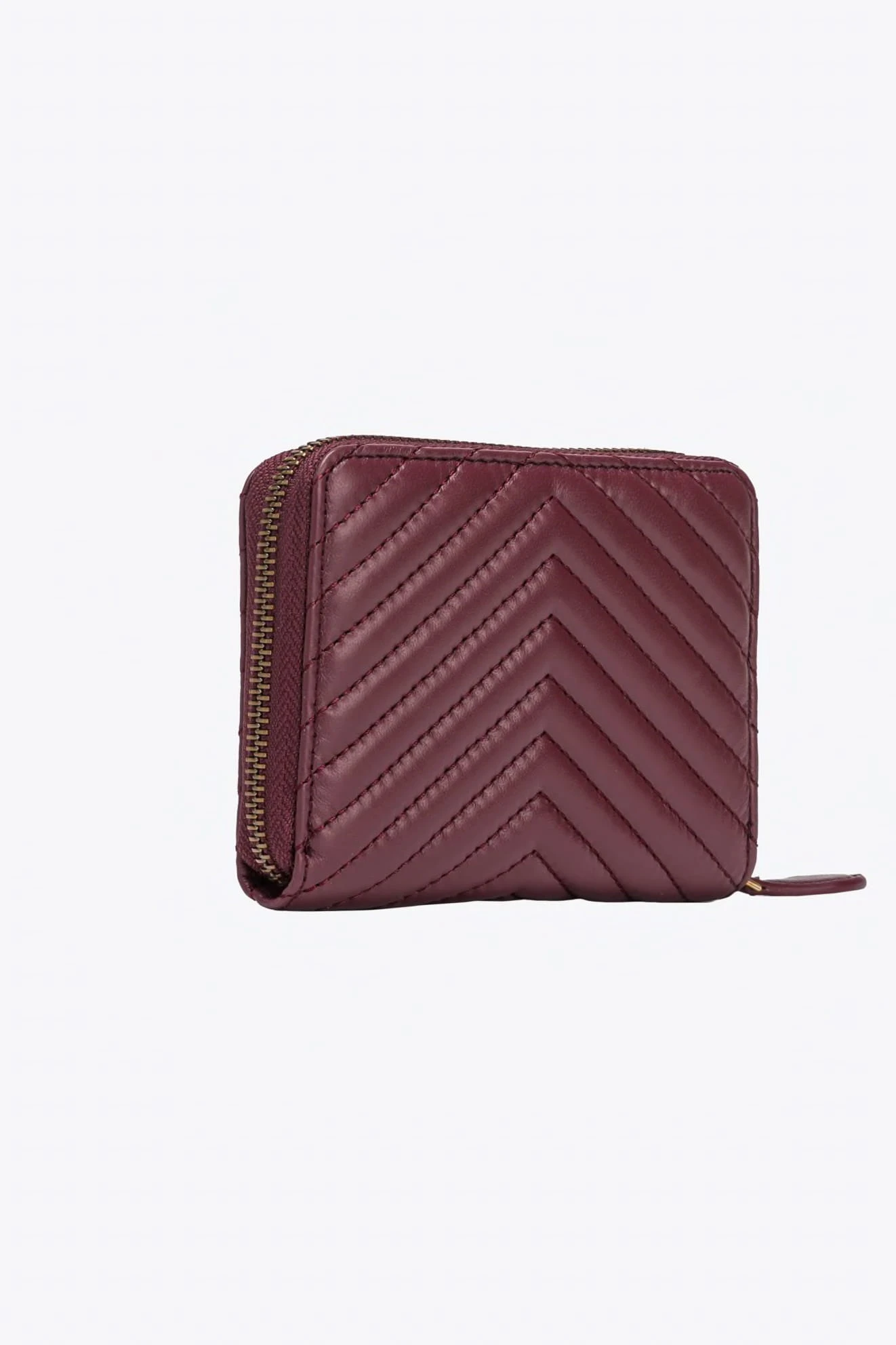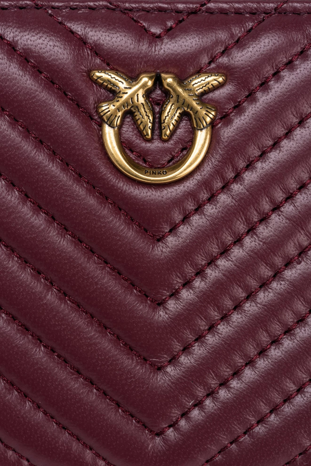 Wykonany z najwyższej jakości skóry nappa, ten kwadratowy portfel zapewnia nie tylko niezrównany styl, ale także trwałość. Pikowany wzór szewronu dodaje mu subtelnej elegancji, podczas gdy plakietka Love Birds Diamond Cut na podkładce ze skóry podkreśla wyjątkowy charakter marki Pinko.