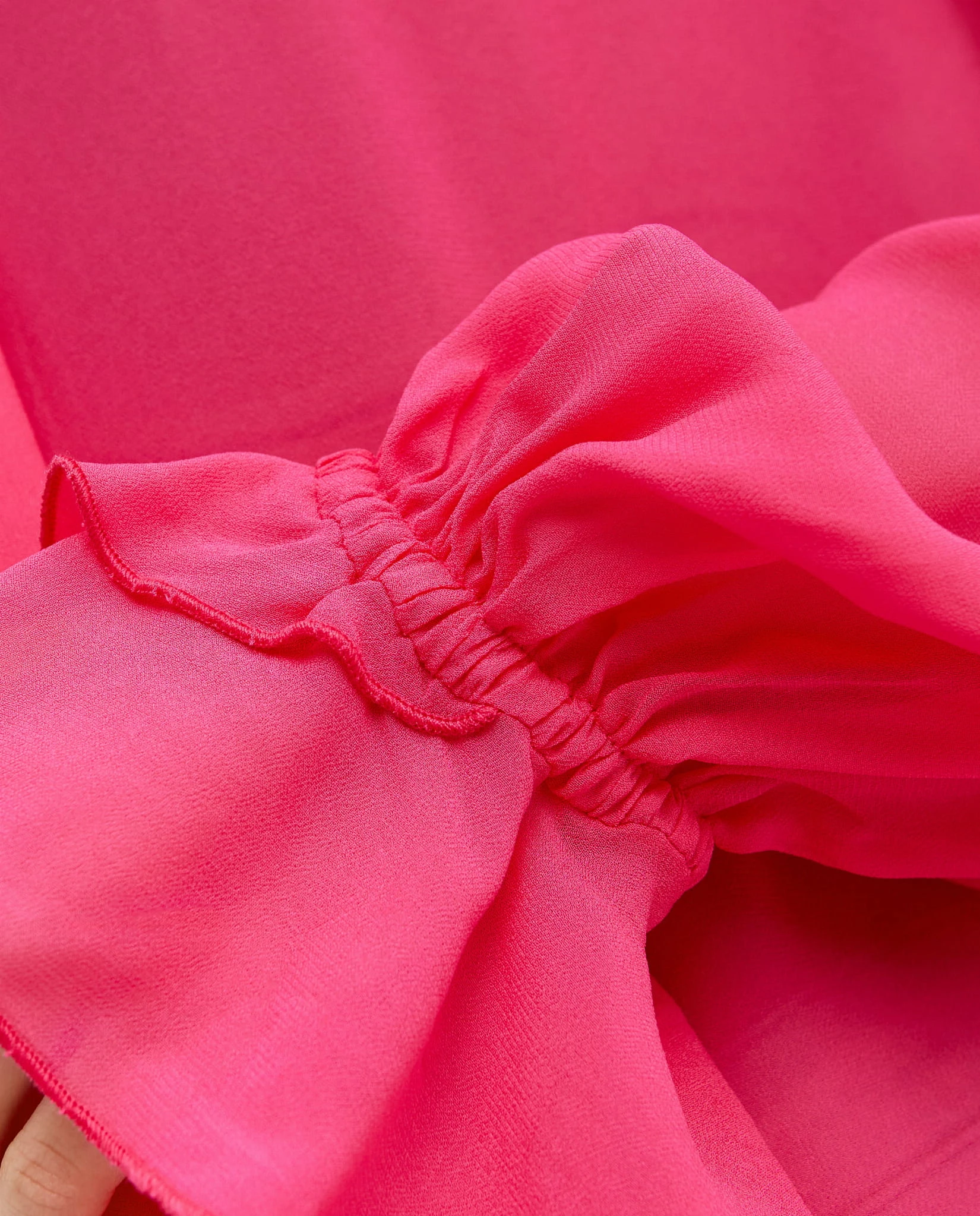 Wykorzystanie wiskozowej żorżety nie tylko podkreśla piękno, ale zapewnia także wyjątkowy komfort noszenia. Ta delikatna tkanina układa się lekko na sylwetce, pozwalając cieszyć się wyjątkową swobodą ruchów.