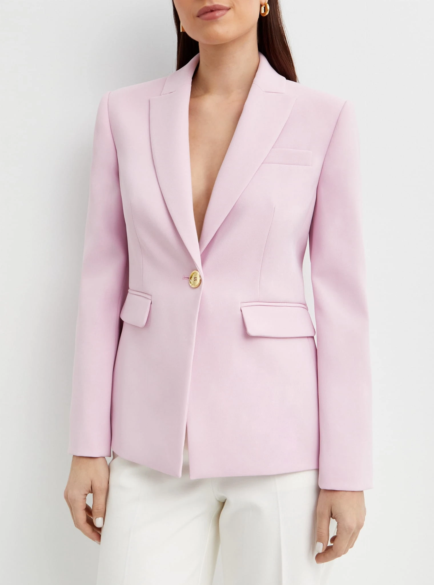 Jednorzędowe zapięcie na jeden metalowy guzik dodaje marynarce subtelności i klasy. Dzięki temu możesz swobodnie regulować jej dopasowanie do swoich potrzeb.