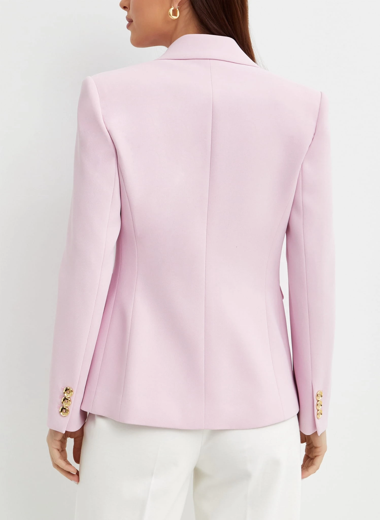 Zaopatrz się w wyjątkowy akcent w Twojej garderobie, z naszą kobiecą marynarką z elastycznej krepy, dostępną w subtelnym odcieniu różu. Ta niezwykle dopasowana marynarka posiada linie podkreślające talię, co sprawia, że doskonale prezentuje się na każdej sylwetce.