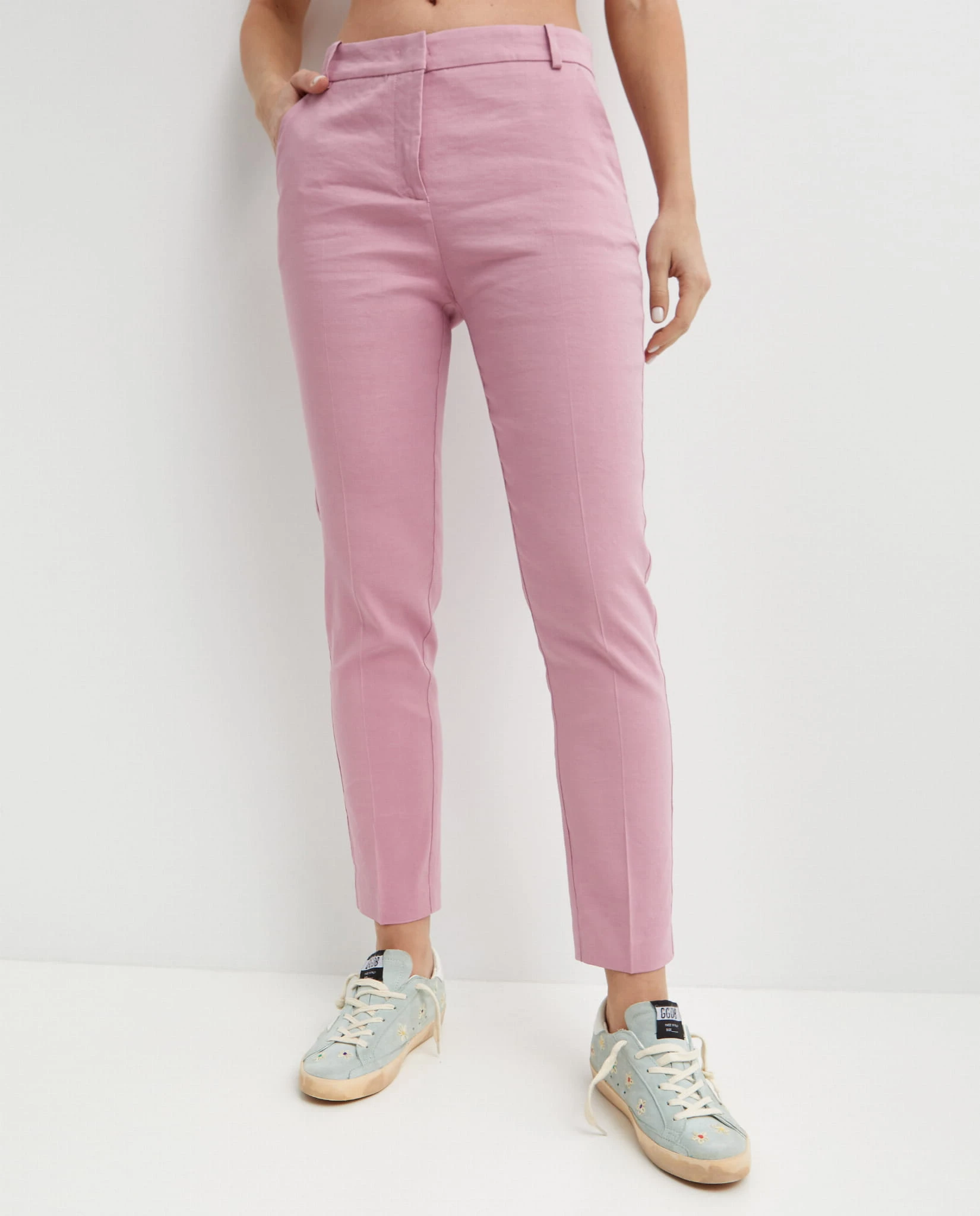 Różowe cygaretki Bello Pinko to połączenie 59% lnu, 38% wiskozy oraz 3% elastanu, a ich podszewka wykonana jest w 100% z bawełny. Różowy kolor cygaretek jest nie tylko modny, ale także dodaje energii i świeżości każdej stylizacji.