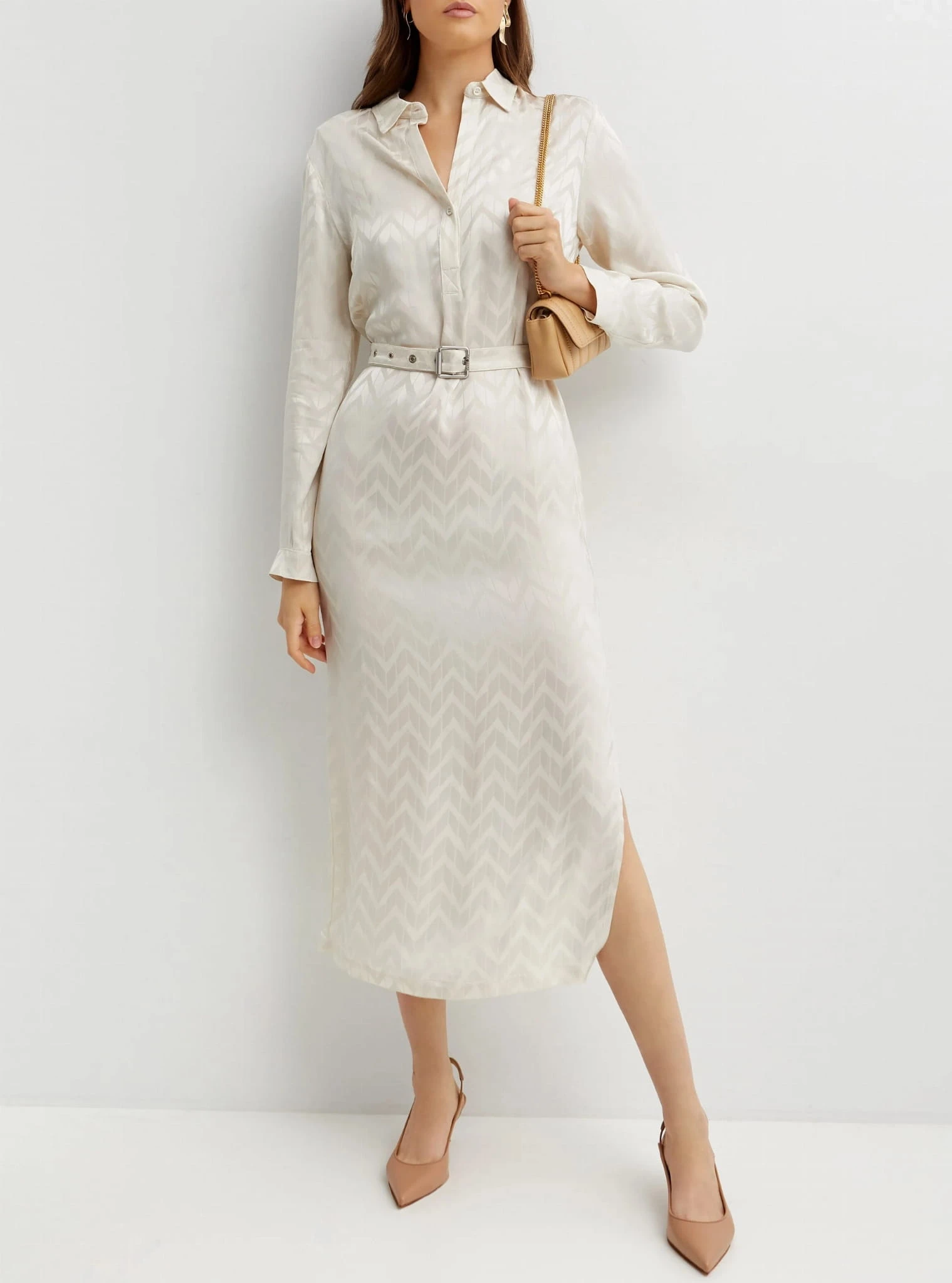 - Pasek: W talii, z ozdobną metalową klamrą – subtelnie podkreśla kobiecą sylwetkę.