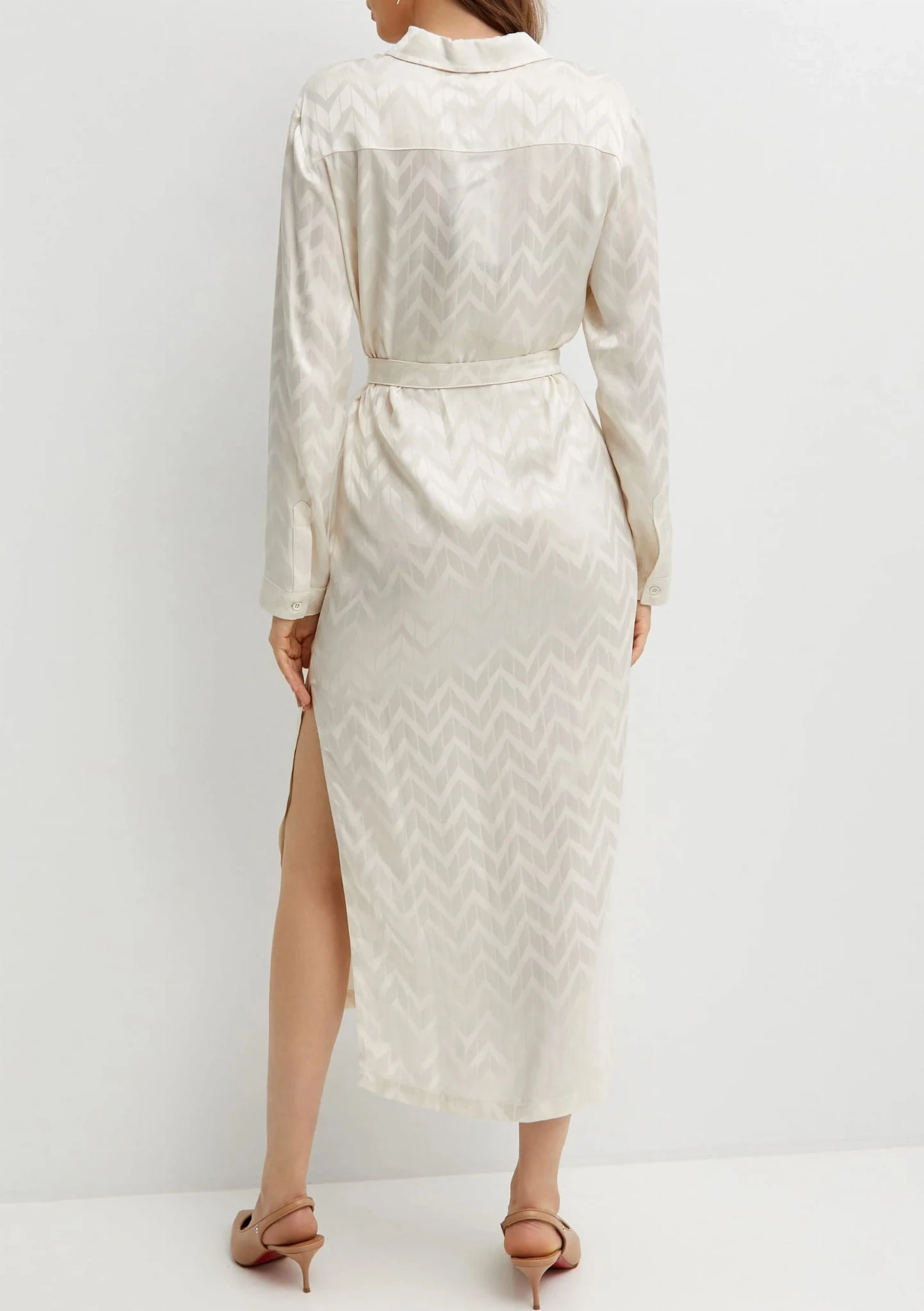 - Materiał: Satynowy żakard – luksusowa tkanina o delikatnym połysku, dodająca elegancji i klasy.