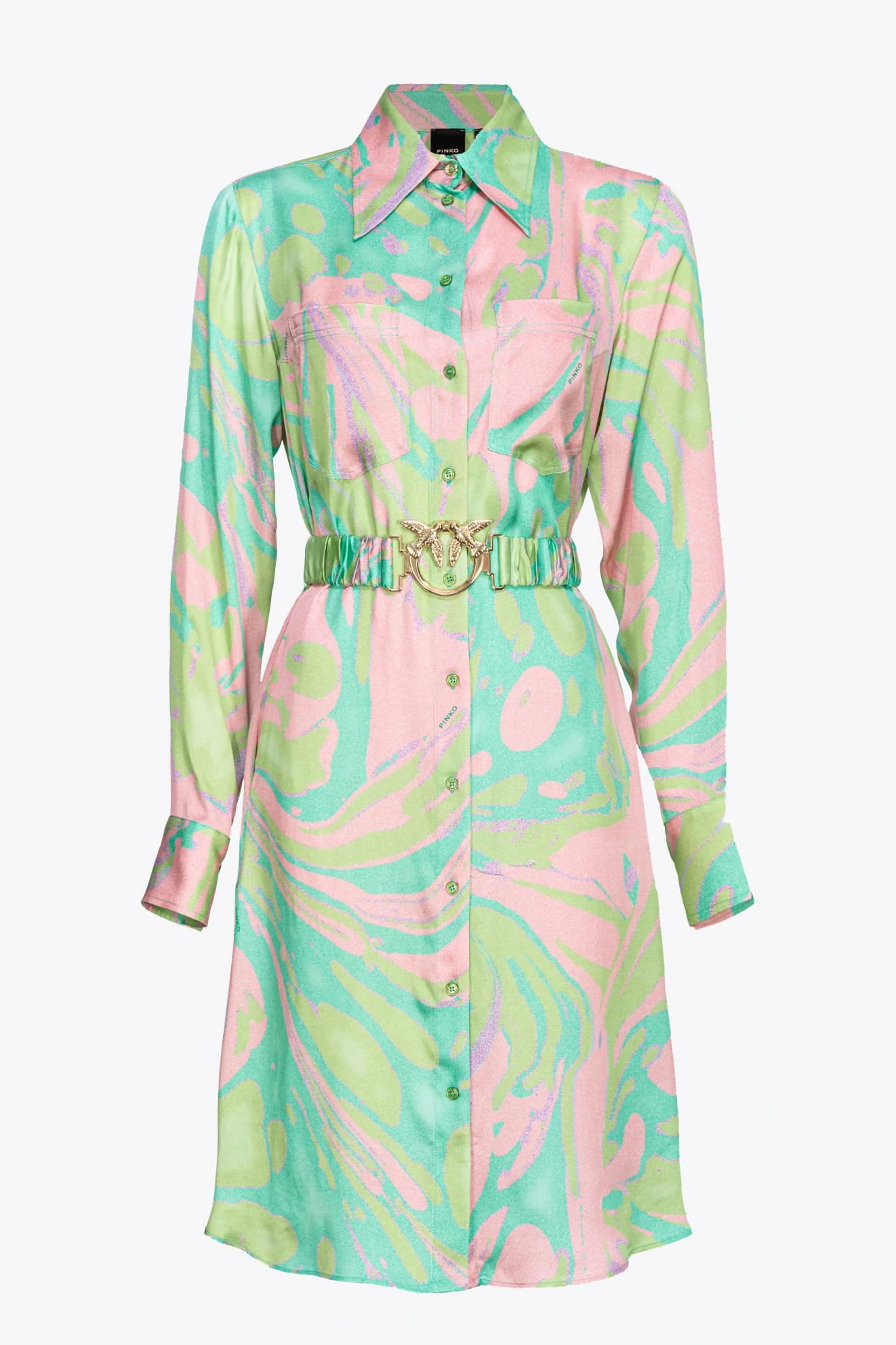 - Krótka szmizjerka Cassiopea PINKO wykonana z błyszczącej, wiskozowej satyny