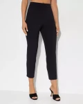 - Spodnie o smukłej linii, uszyte z technicznej, elastycznej krepy