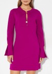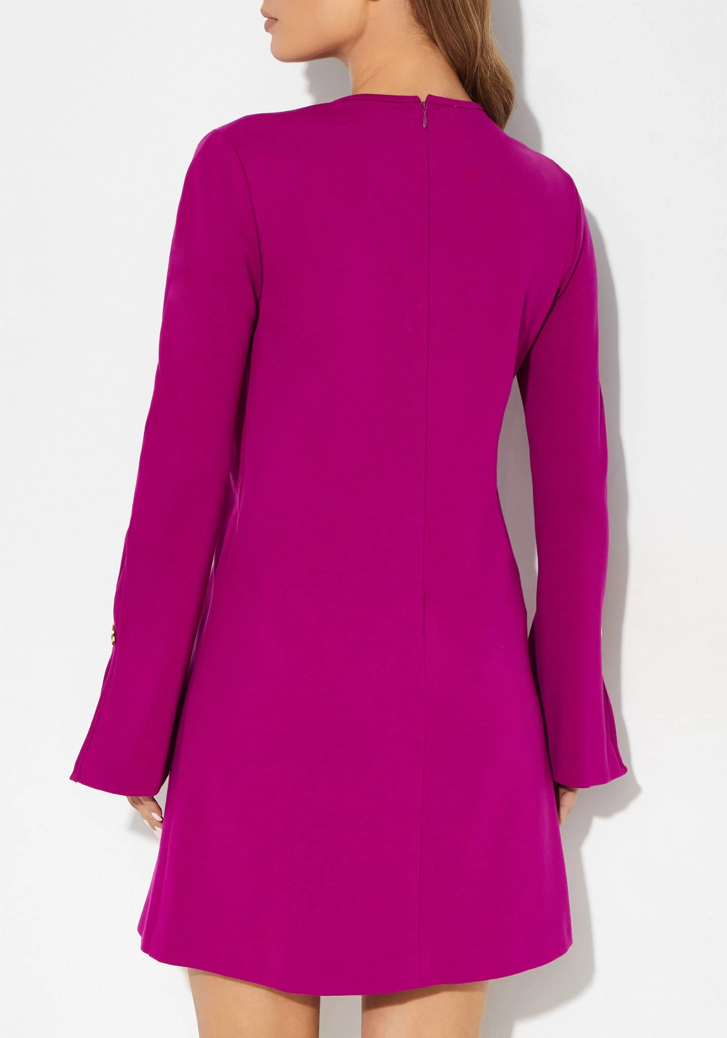 - Linia lekko rozszerzana w A, z okrągłym dekoltem i długimi, rozszerzanymi rękawami