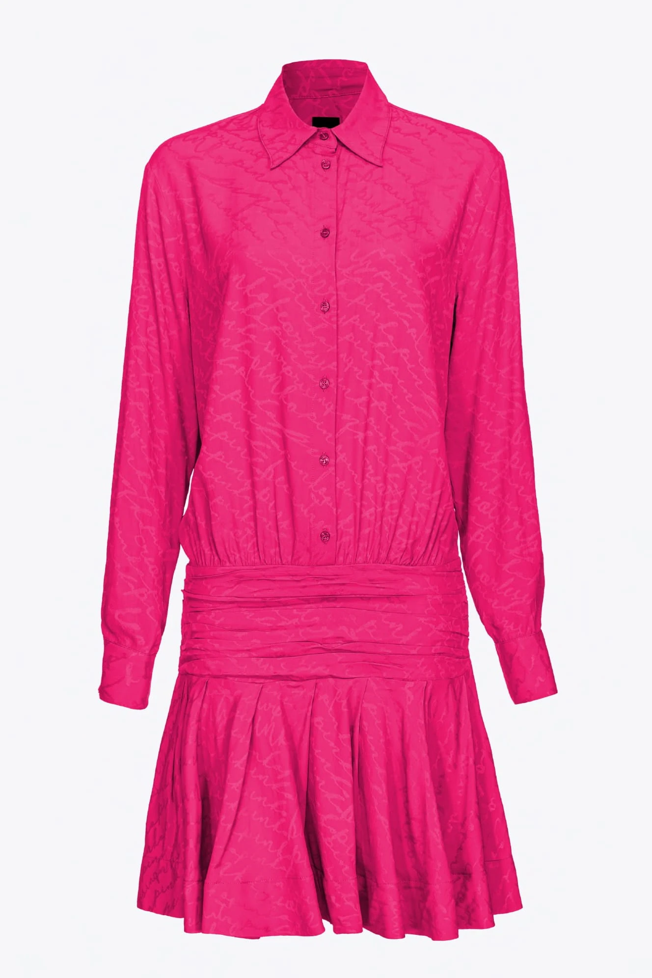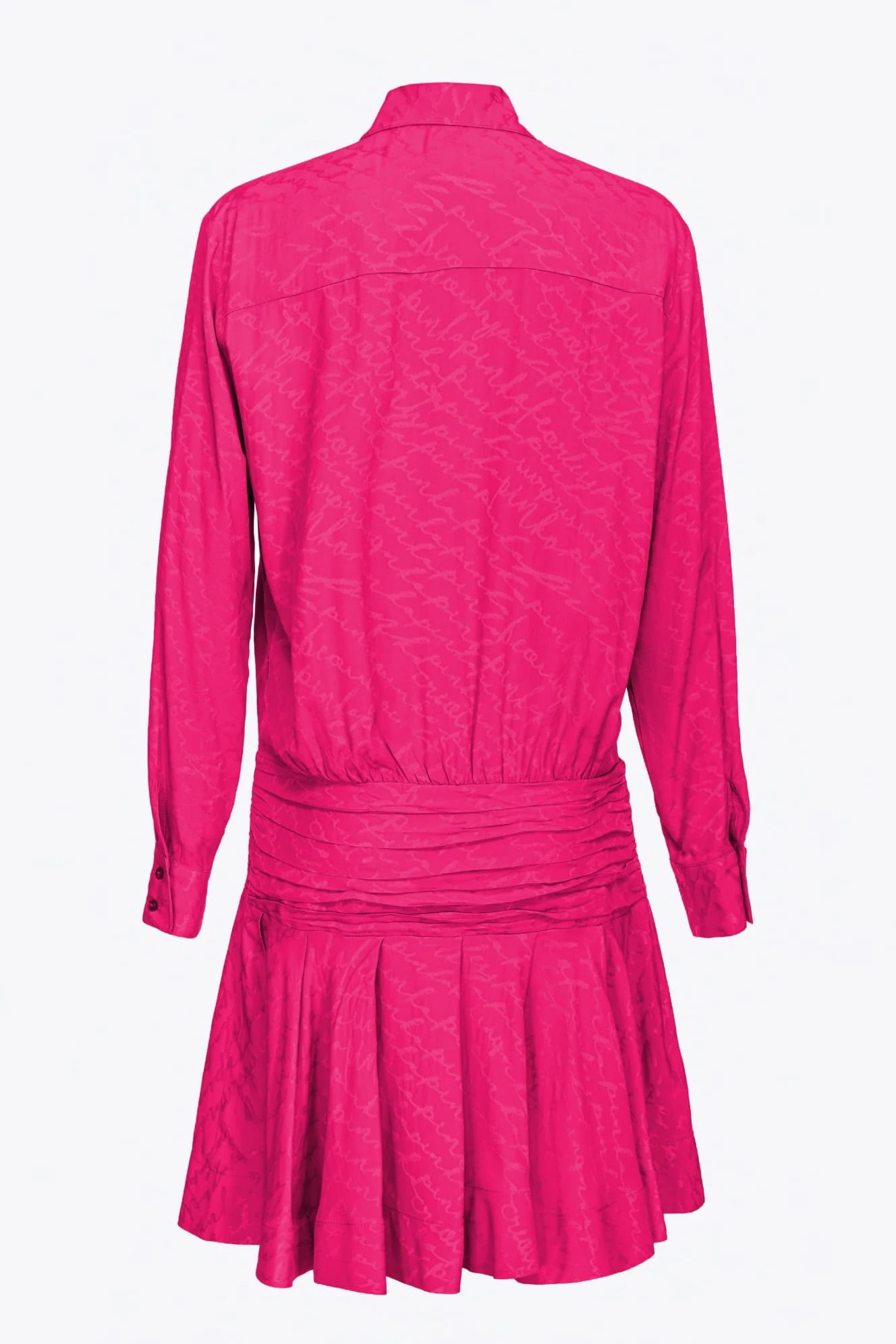 - Krótka sukienka szmizjerka uszyta z żakardowej mieszanki jedwabiu z wzorem logo PINKO na całości, tworzącym specjalny rozmyty efekt