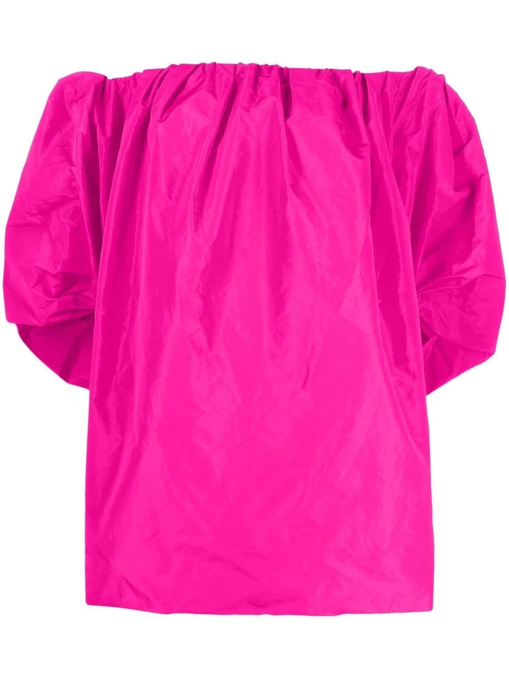 - Dekolt odsłaniający ramiona i krótkie rękawy bufki