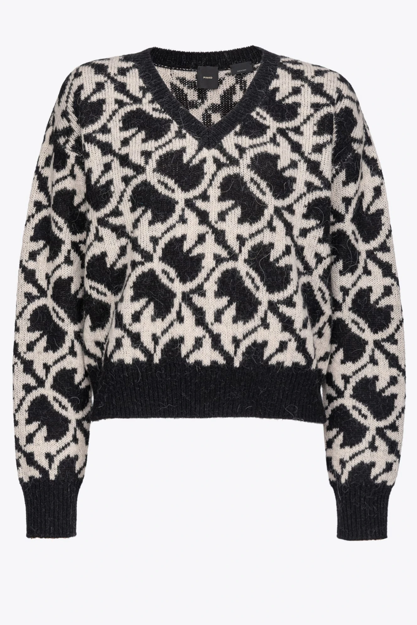 - Sweter z długim rękawem o luźnym kroju, wykonany z przędzy z wełny i alpaki, z wzorem logo Love Birds na całości