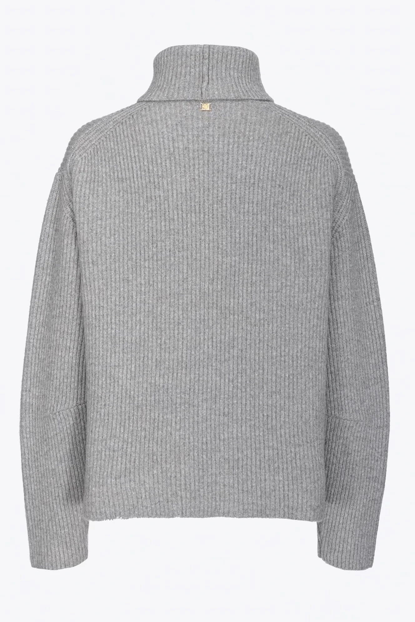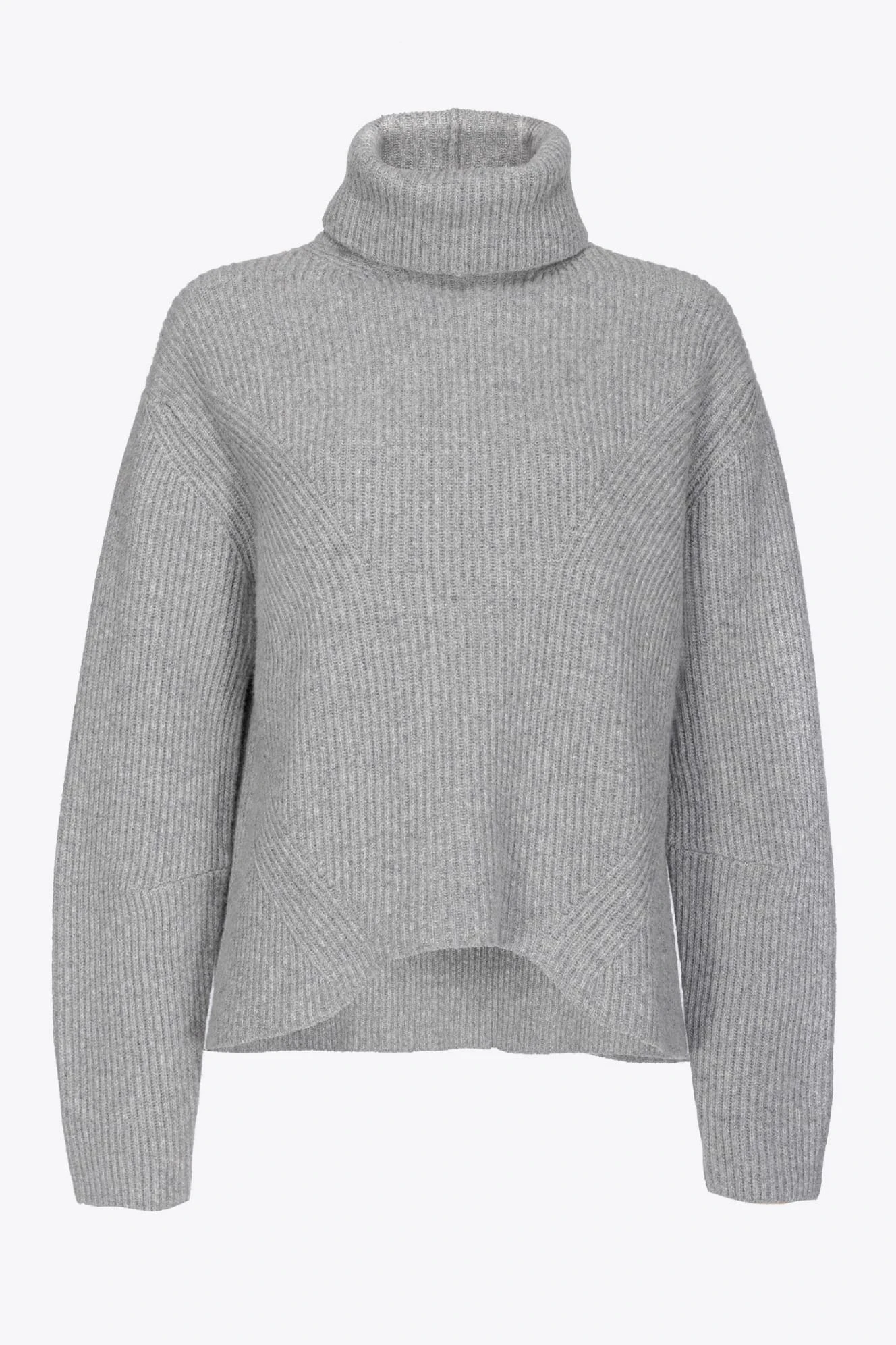 - Sweter z golfem wykonany z miękkiej dzianiny z mieszanki wełny i kaszmiru wykonanej splotem ściągaczowym