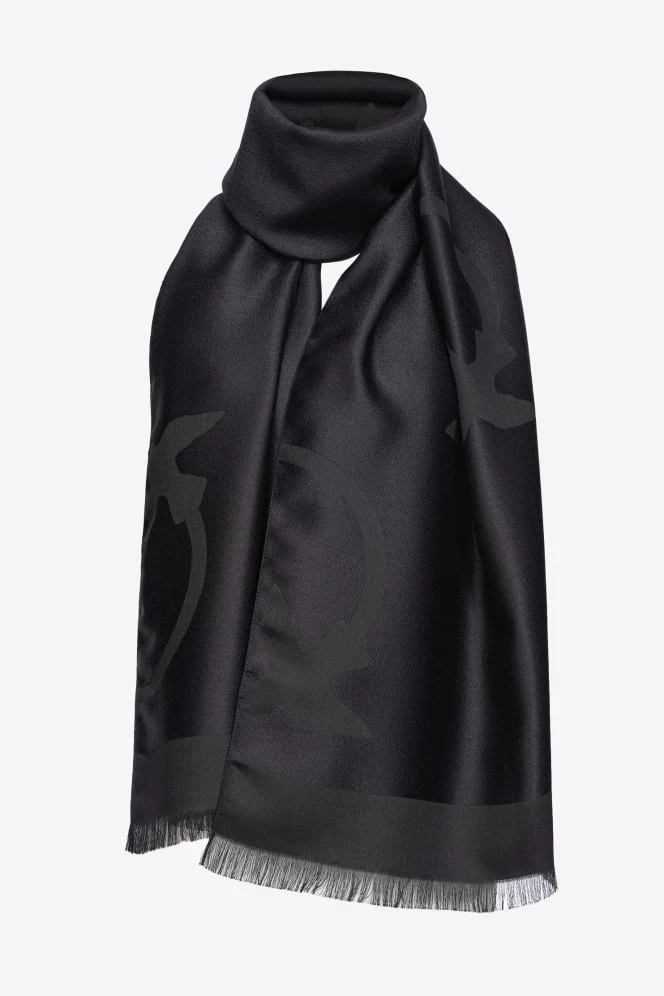- Szalik z mieszanki wełny, kaszmiru i modalu o błyszczącym żakardowym wykończeniu z dużym wzorem Love Birds na całości