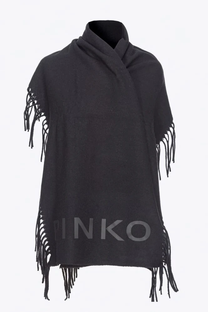 - Szalik z miękkiej wełnianej dzianiny, z frędzlami i personalizacją w postaci logo PINKO na jednym końcu