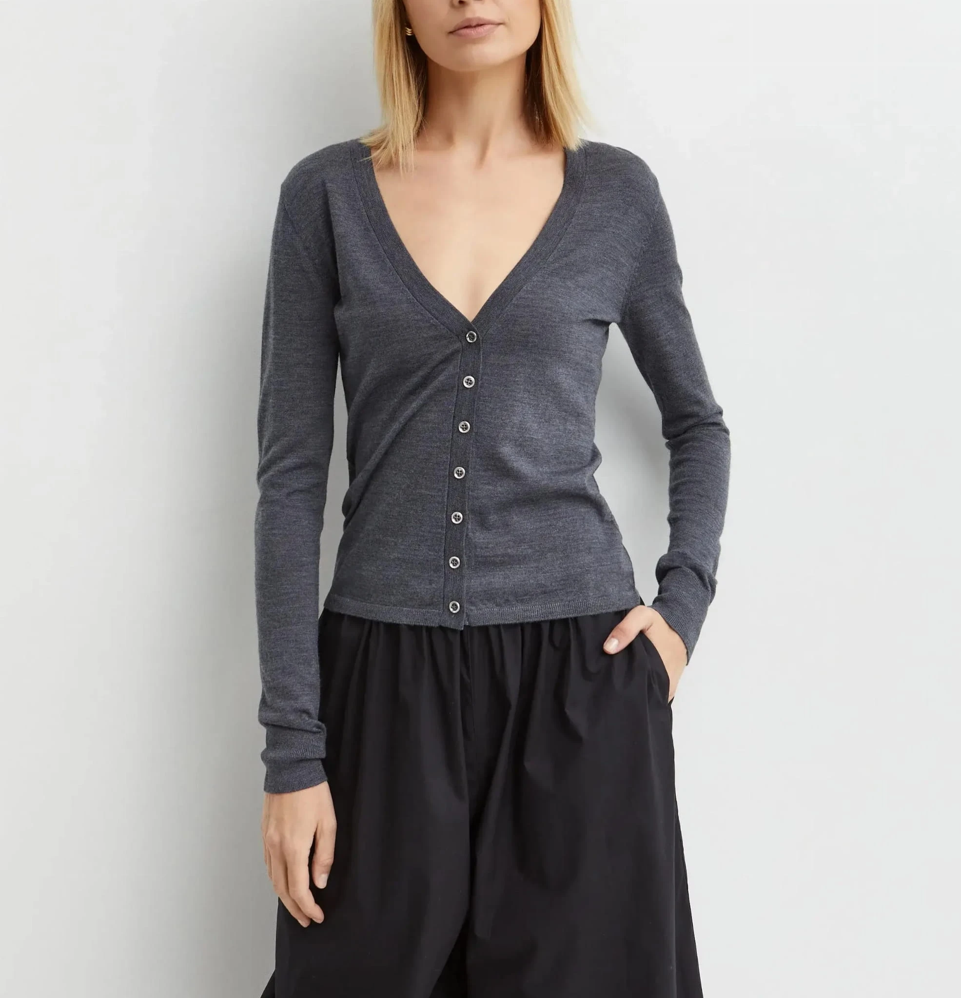 - Nazwa: Szary zapinany sweter z cienkiej wełny