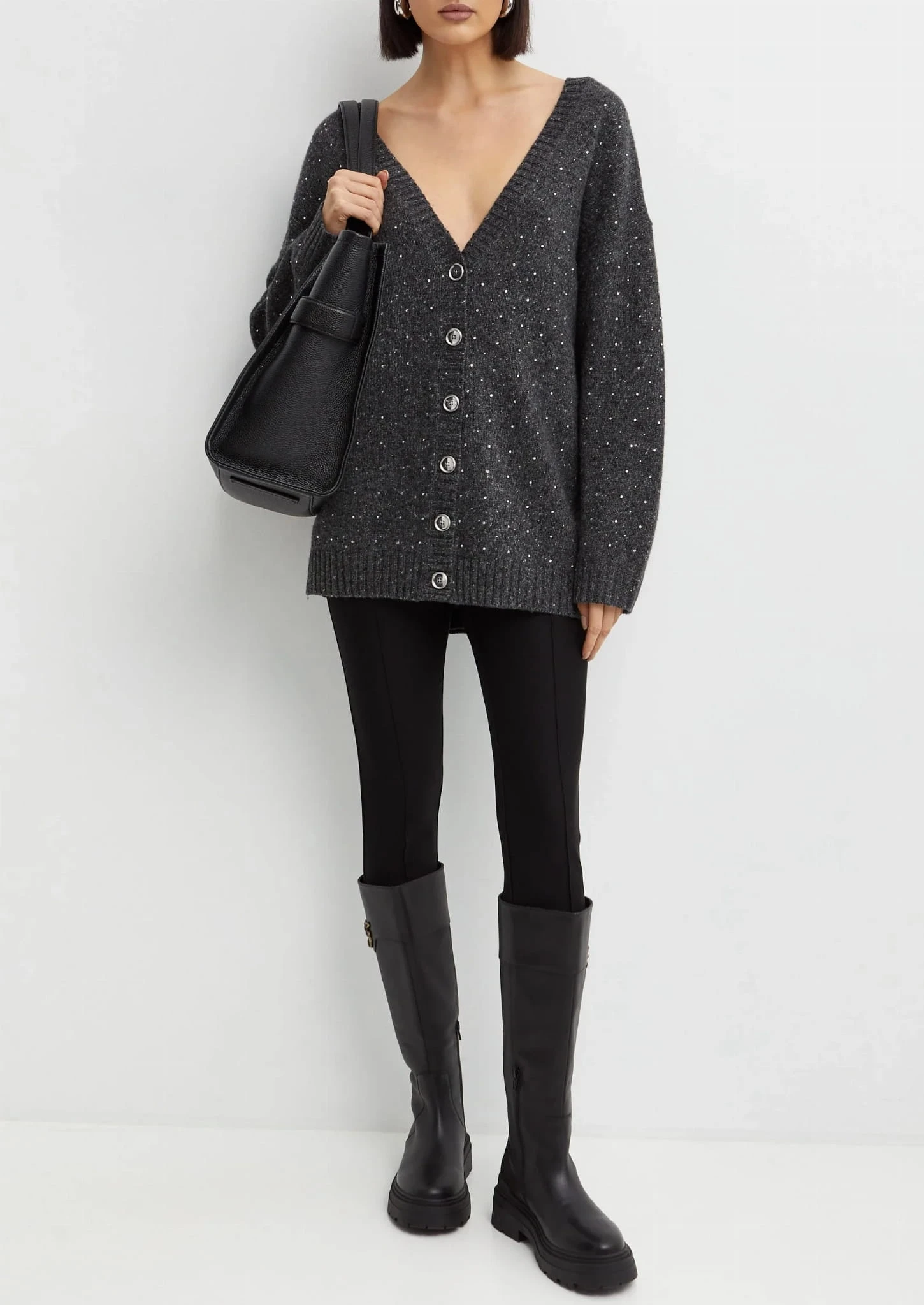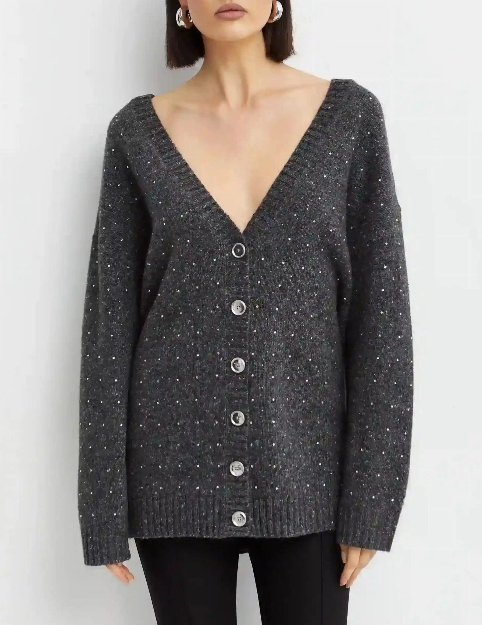 - Nazwa: Szary kardigan z ozdobnymi kryształkami