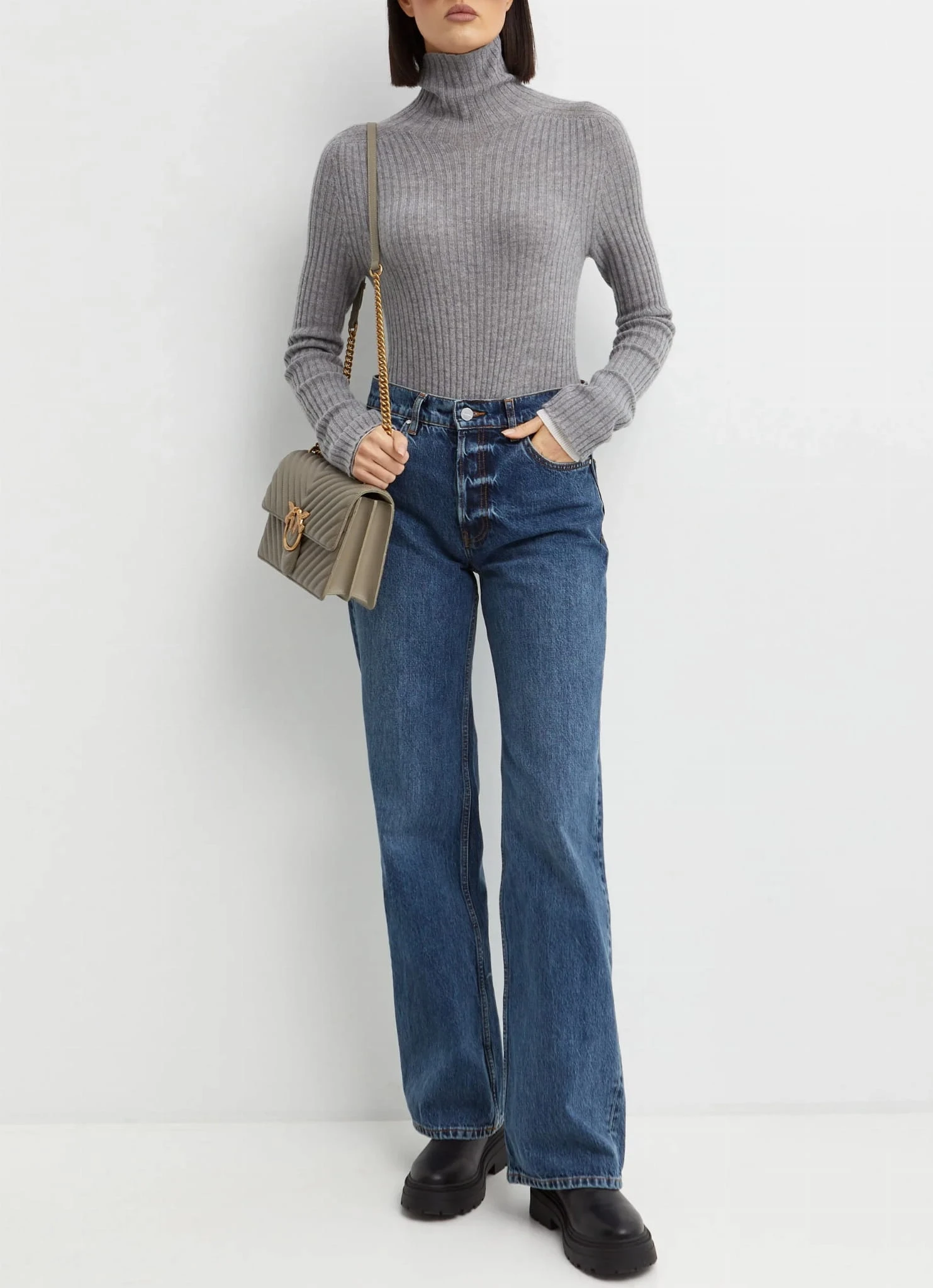 Sweter z golfem projektu marki Pinko w kolorze szarym to elegancka i komfortowa propozycja na chłodniejsze dni. Wykonany z mieszanki wełny i kaszmiru, zapewnia przyjemność noszenia oraz odpowiednią ciepłotę, nie tracąc przy tym na lekkości. Naszywka z logo na tyle dodaje mu subtelnego, ale charakterystycznego akcentu, podkreślając markę. Wyprodukowany we Włoszech, sweter charakteryzuje się wysoką jakością i dbałością o detale. To doskonały wybór dla osób, które cenią wygodę, elegancję i klasyczny, ponadczasowy styl.