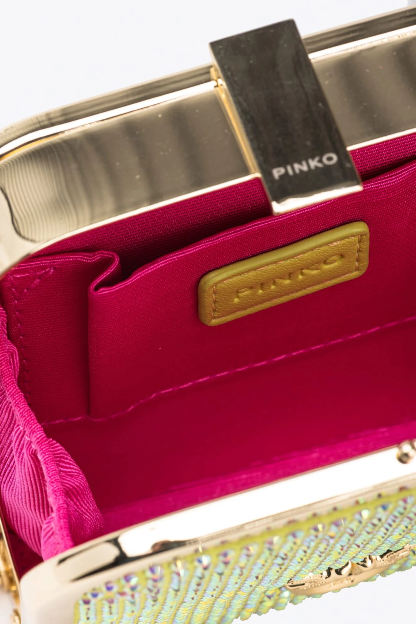 PINKO Zielona torebka z cyrkoniami Box Clutch
