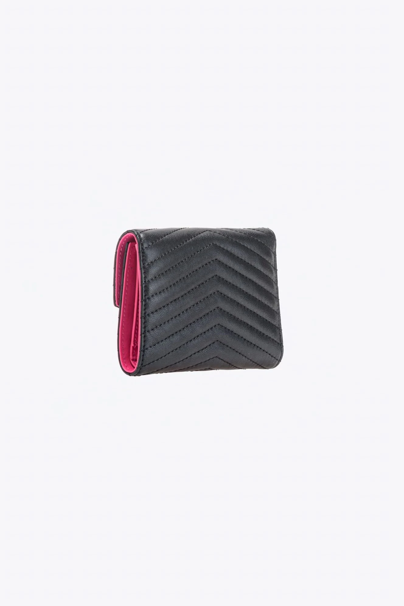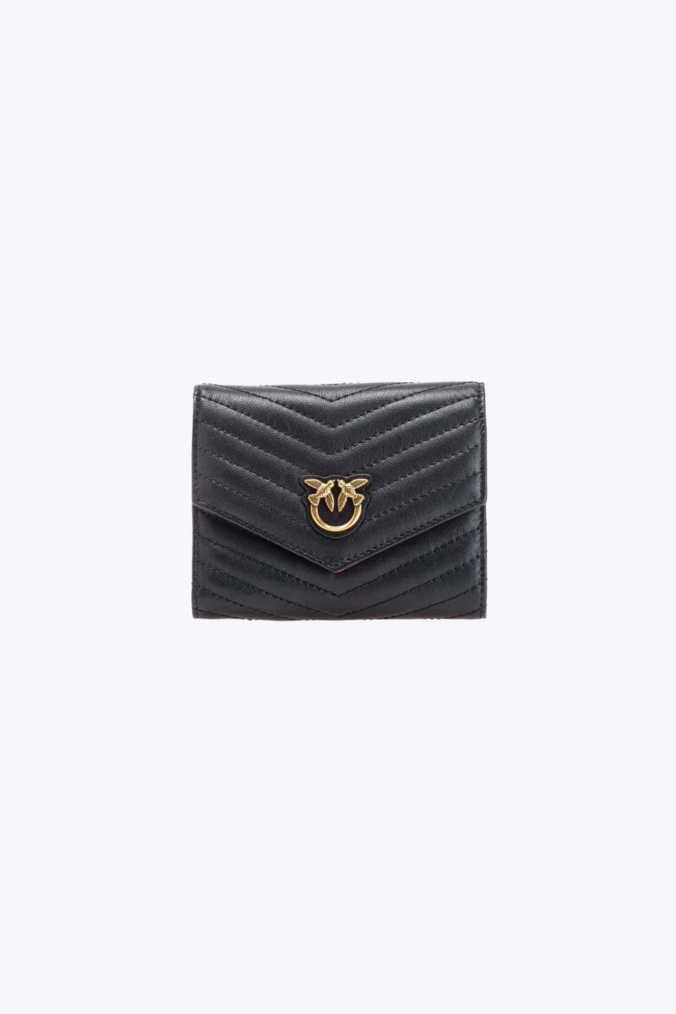 - Mały, kwadratowy portfel wykonany z pikowanej we wzór szewronu skóry nappa