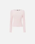 Pudrowy róż, jedwabno-kaszmirowa prążkowana bluzka z długim rękawem COLIME SWETER PINKO