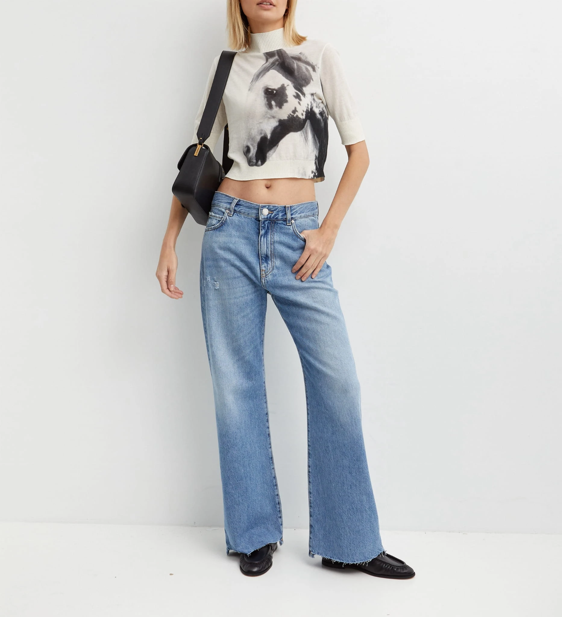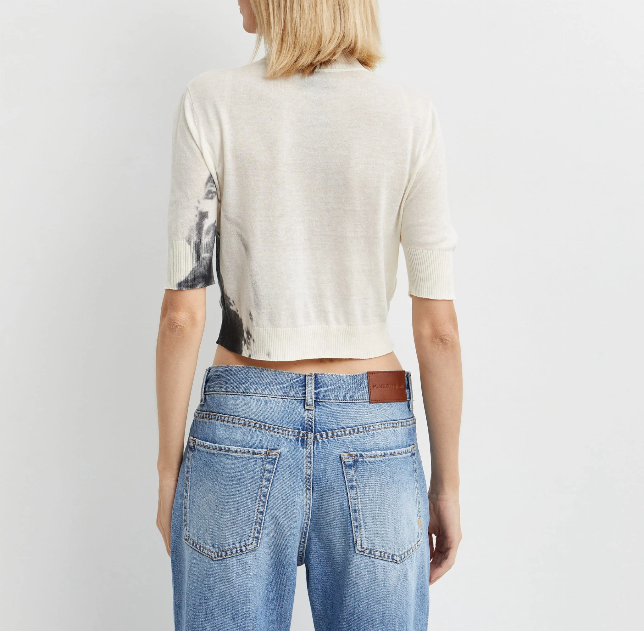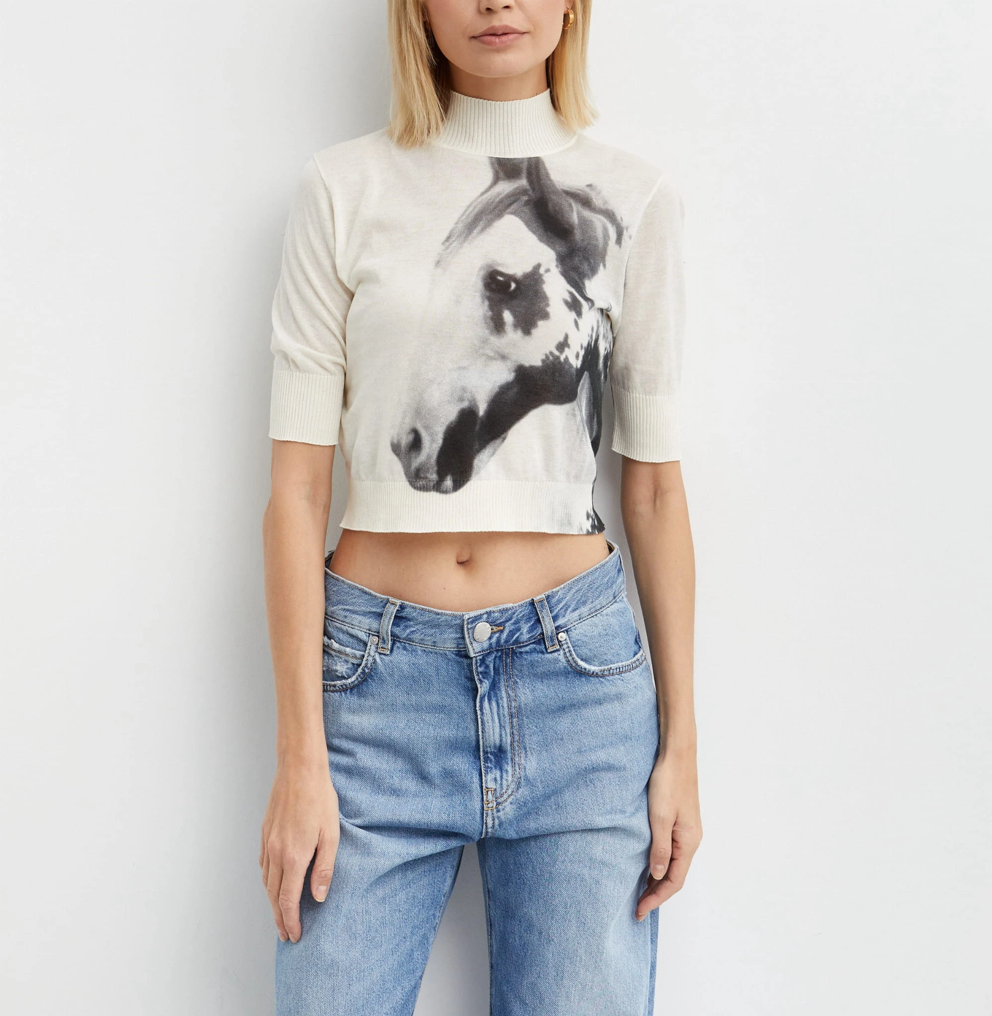 Śmietankowy krótki półgolf z motywem konia PINDOS PINKO
