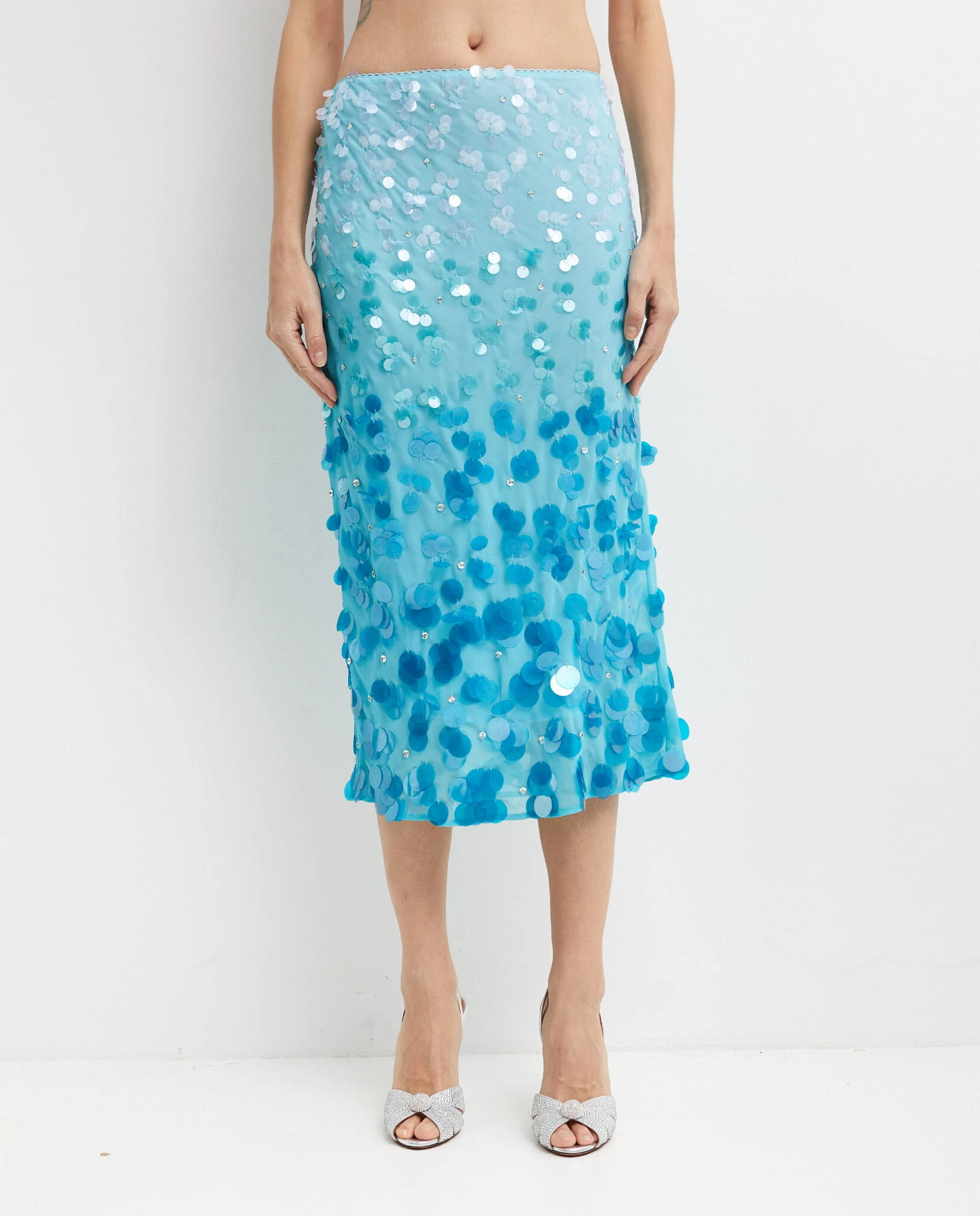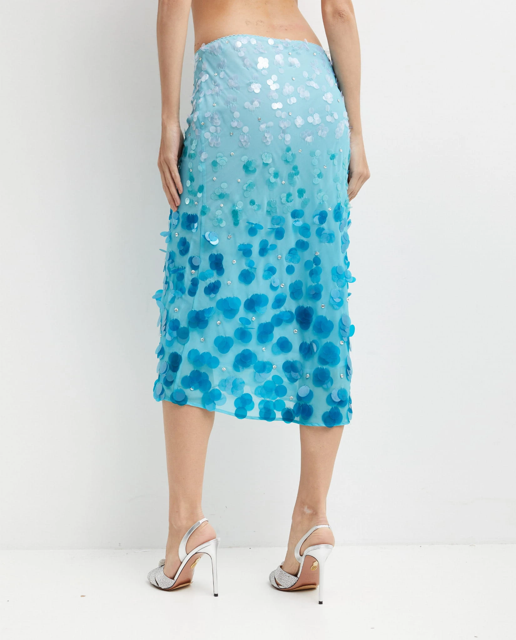 Spódnica midi z cieniowanej żorżety z cekinami i kryształkami niebieska PAVESE