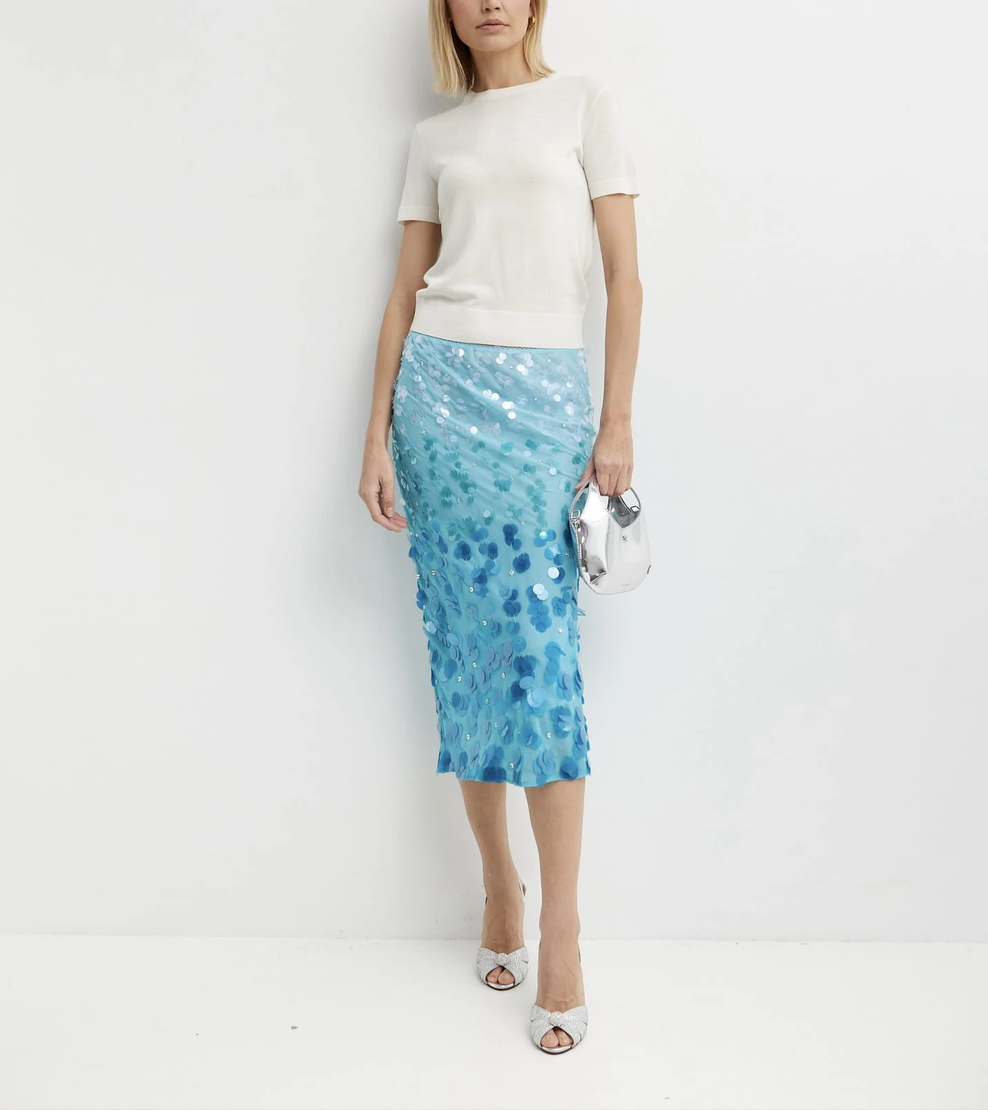 ✨ Błękitna spódnica midi Pinko – olśniewający blask cekinów!
