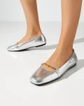 - Nazwa: Srebrne skórzane baleriny
