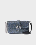 Torebka Baby Love Bag Slouchy marki Pinko, wykonana ze skóry naturalnej i pokryta kryształkami w motyw monogramu. Wyposażona w regulowany skórzany pasek oraz łańcuszek, umożliwiające noszenie na ramieniu lub po skosie. Model zapinany na klapkę z kultową klamrą Love Birds Diamond Cut. Wnętrze wyściełane bawełnianym drelichem zawiera praktyczną, zapinaną na zamek kieszonkę.