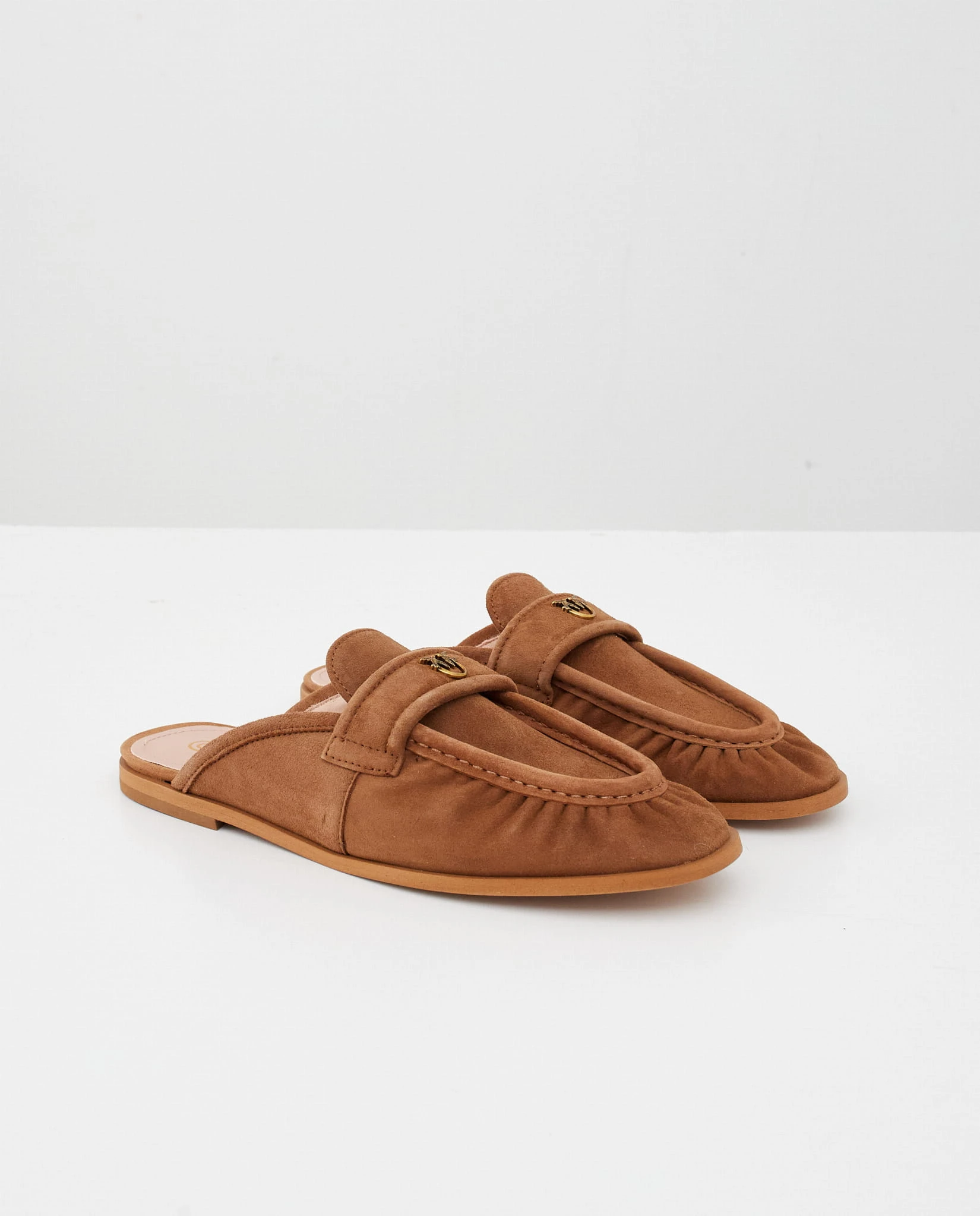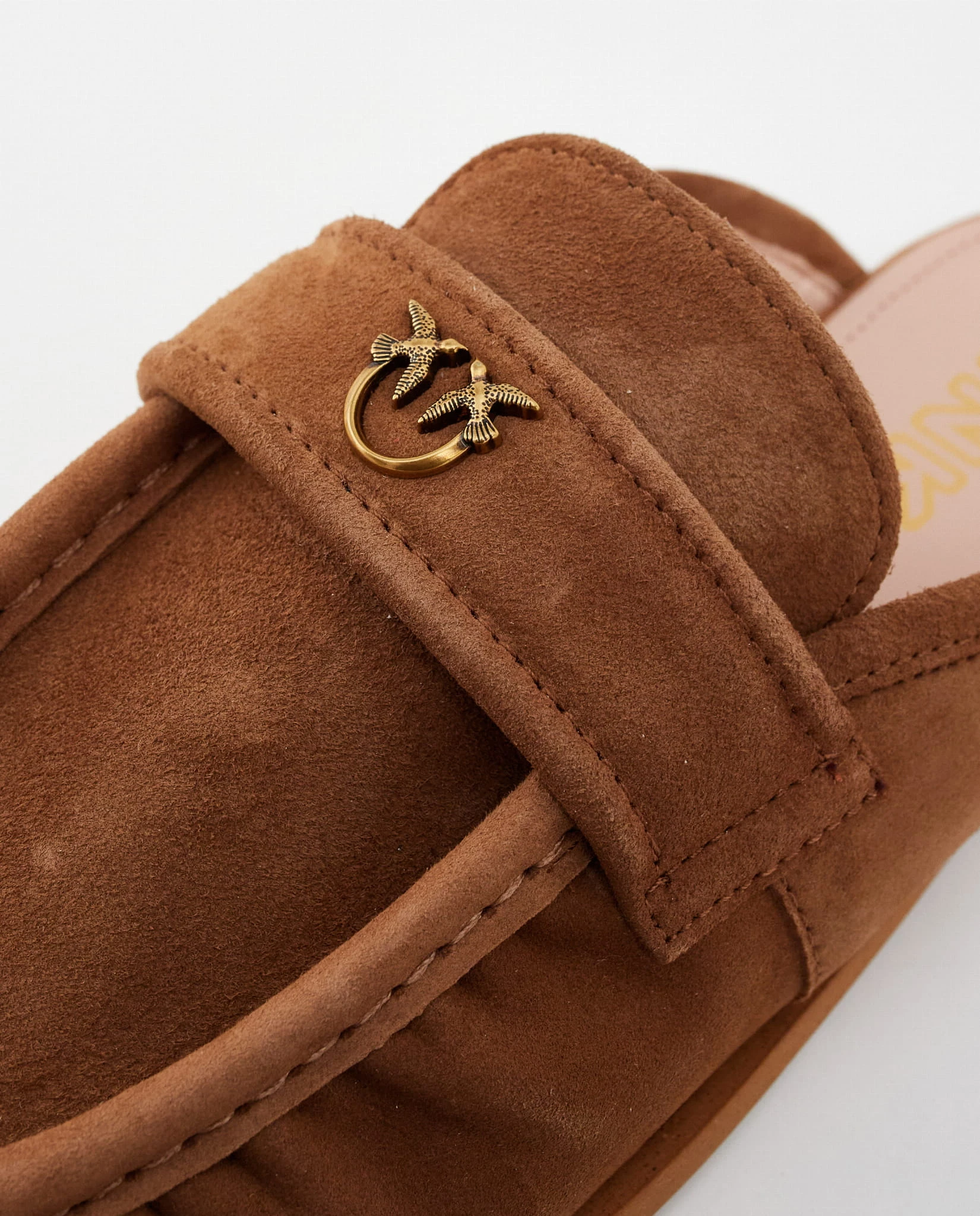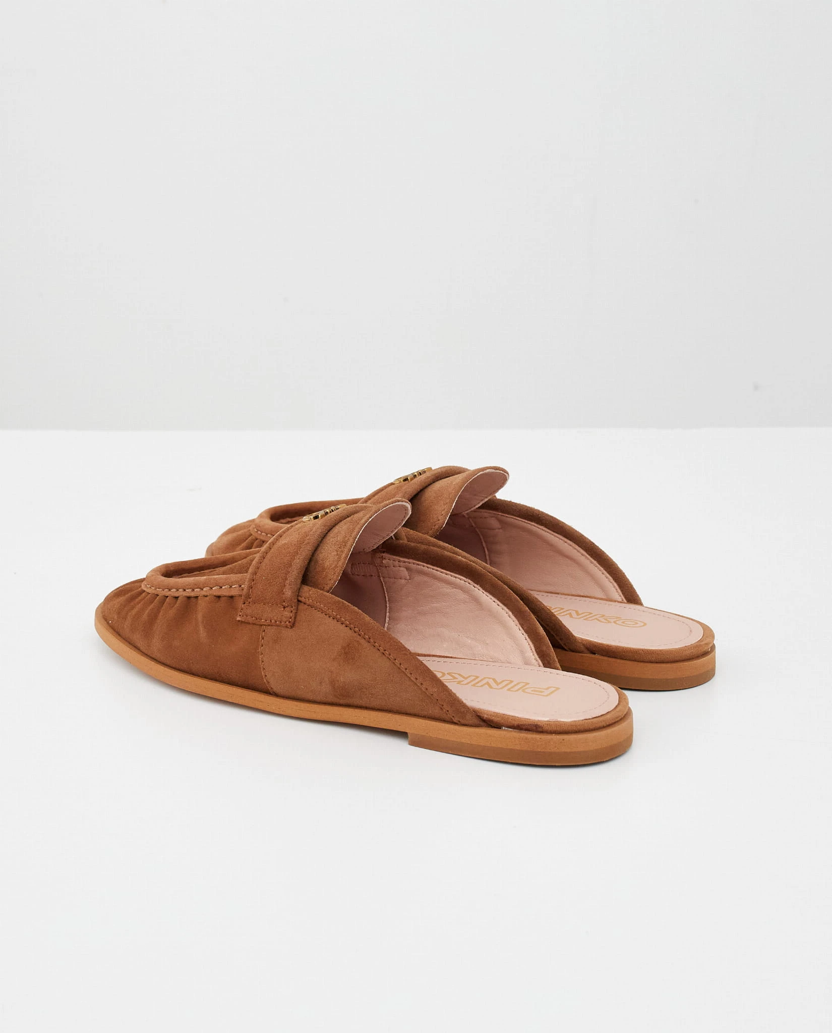 Poznaj eleganckie mule PINKO, które łączą komfort i wyrafinowany styl. Wykonane z wysokiej jakości skóry zamszowej w ciepłym brązowym odcieniu, zachwycają miękkością i luksusowym wykończeniem. Ozdobne logo na przodzie dodaje im charakterystycznego, ekskluzywnego akcentu.