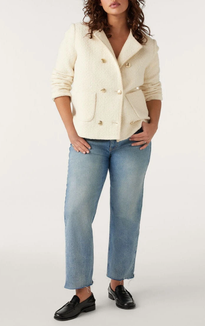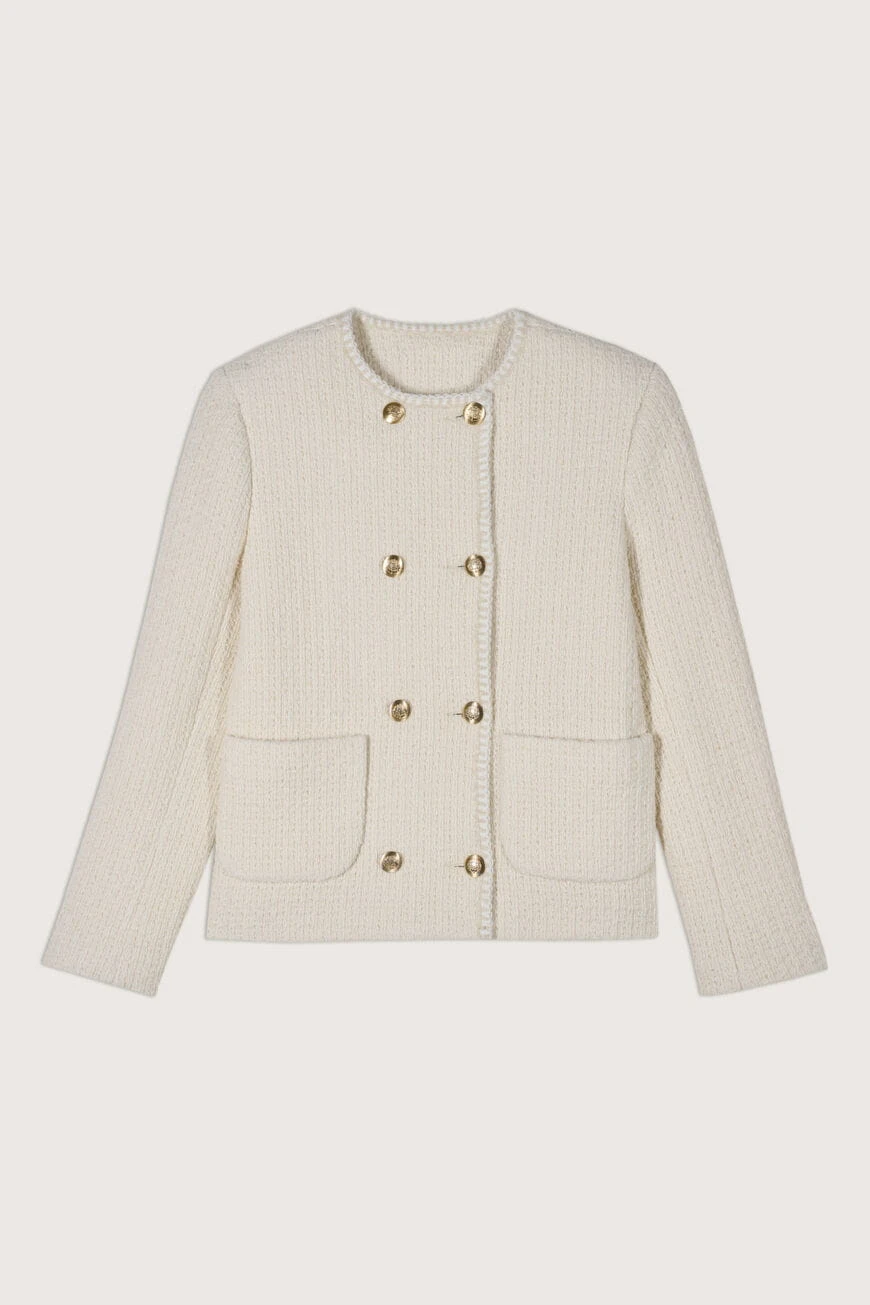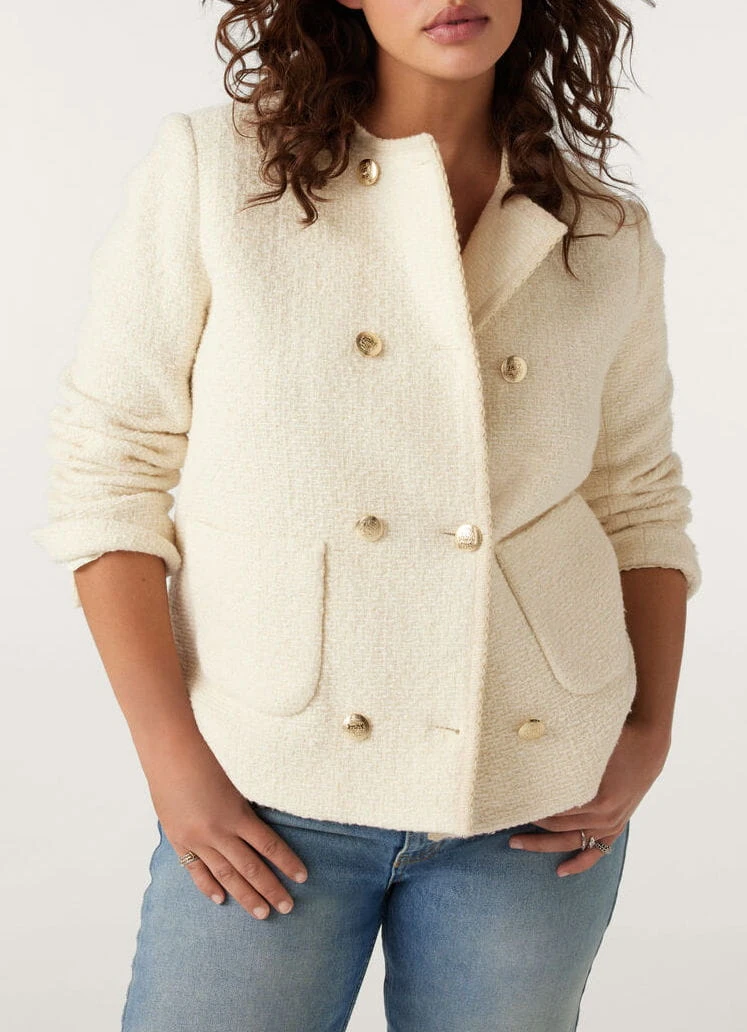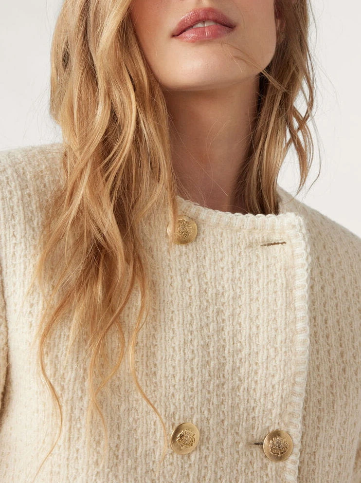 - Dwurzędowe zapięcie na ozdobne guziki w kolorze złotym