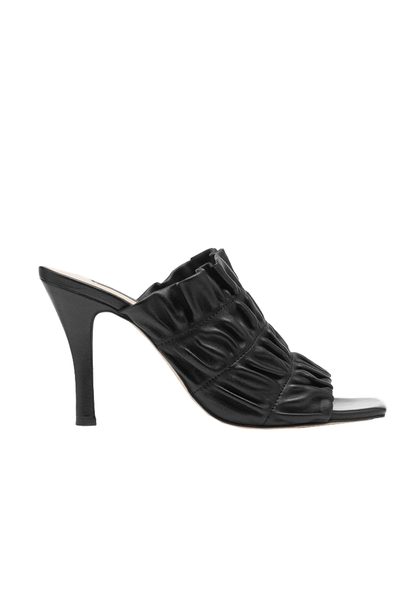 Skórzane klapki na obcasie Camellia w kolorze czarnym